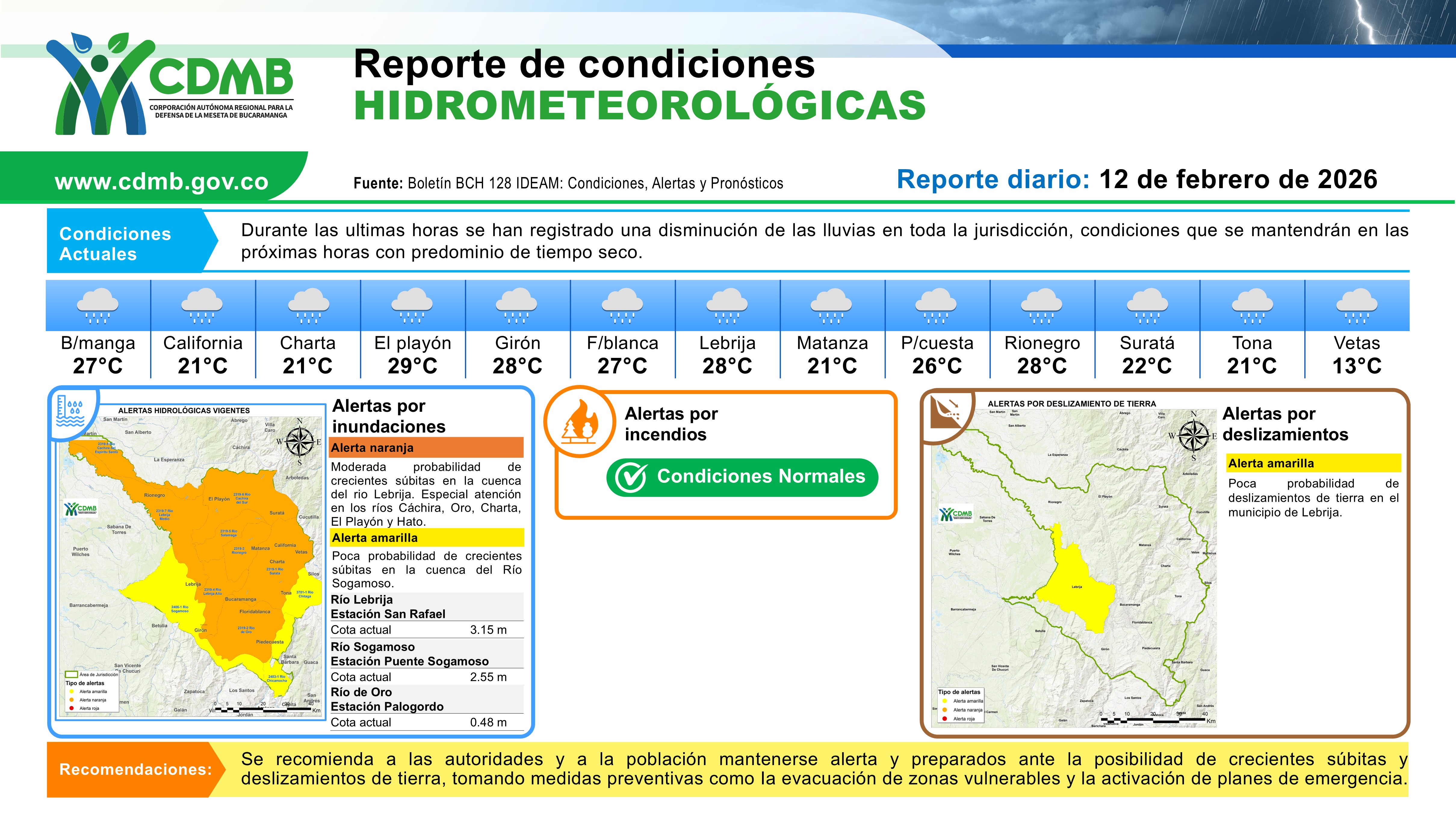 Reporte Alertas Hidrometereologicas 12 de febrero 2026