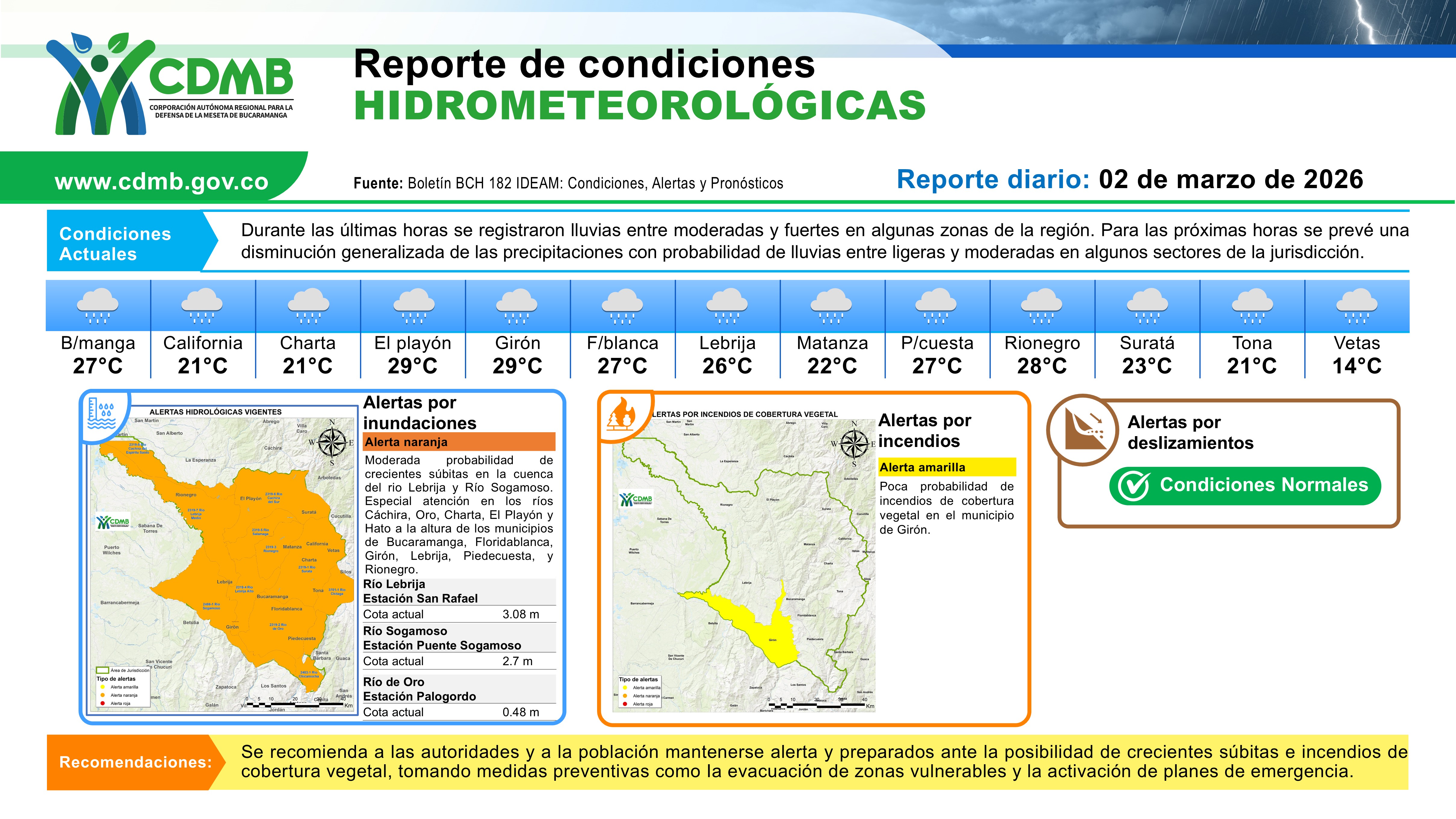 Reporte Alertas Hidrometereologicas 02 de marzo 2026