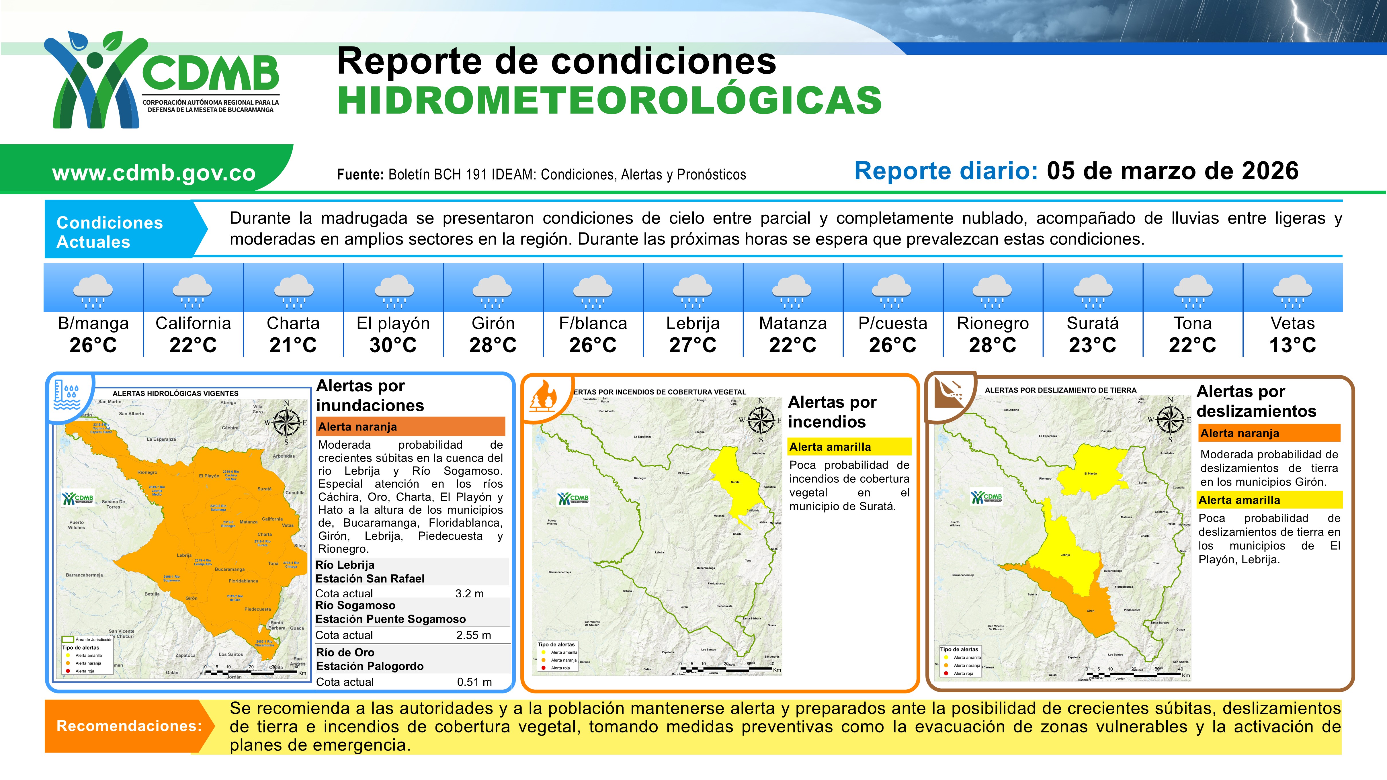 Reporte Alertas Hidrometereologicas 05 de marzo 2026