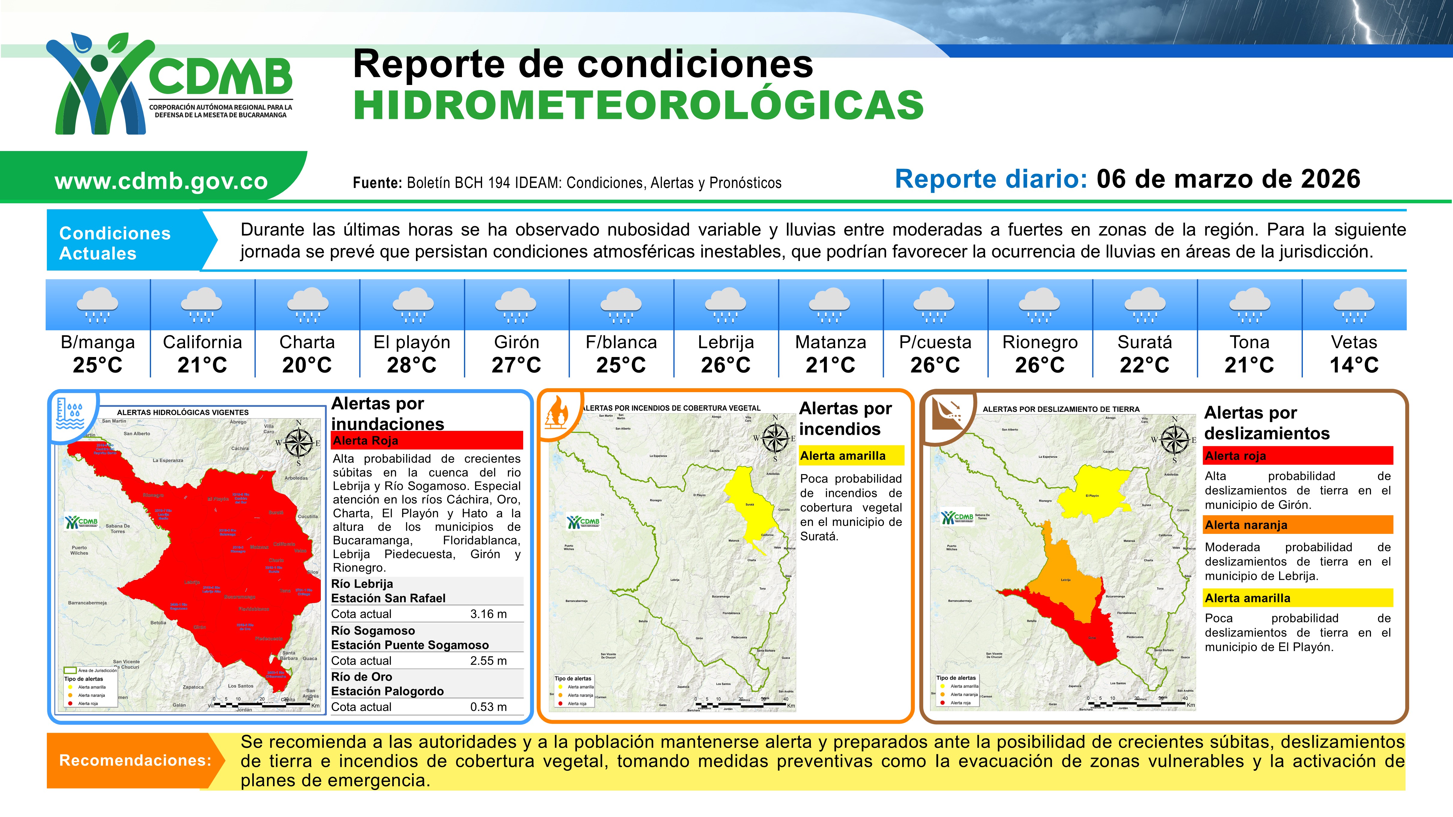 Reporte Alertas Hidrometereologicas 06 de marzo 2026