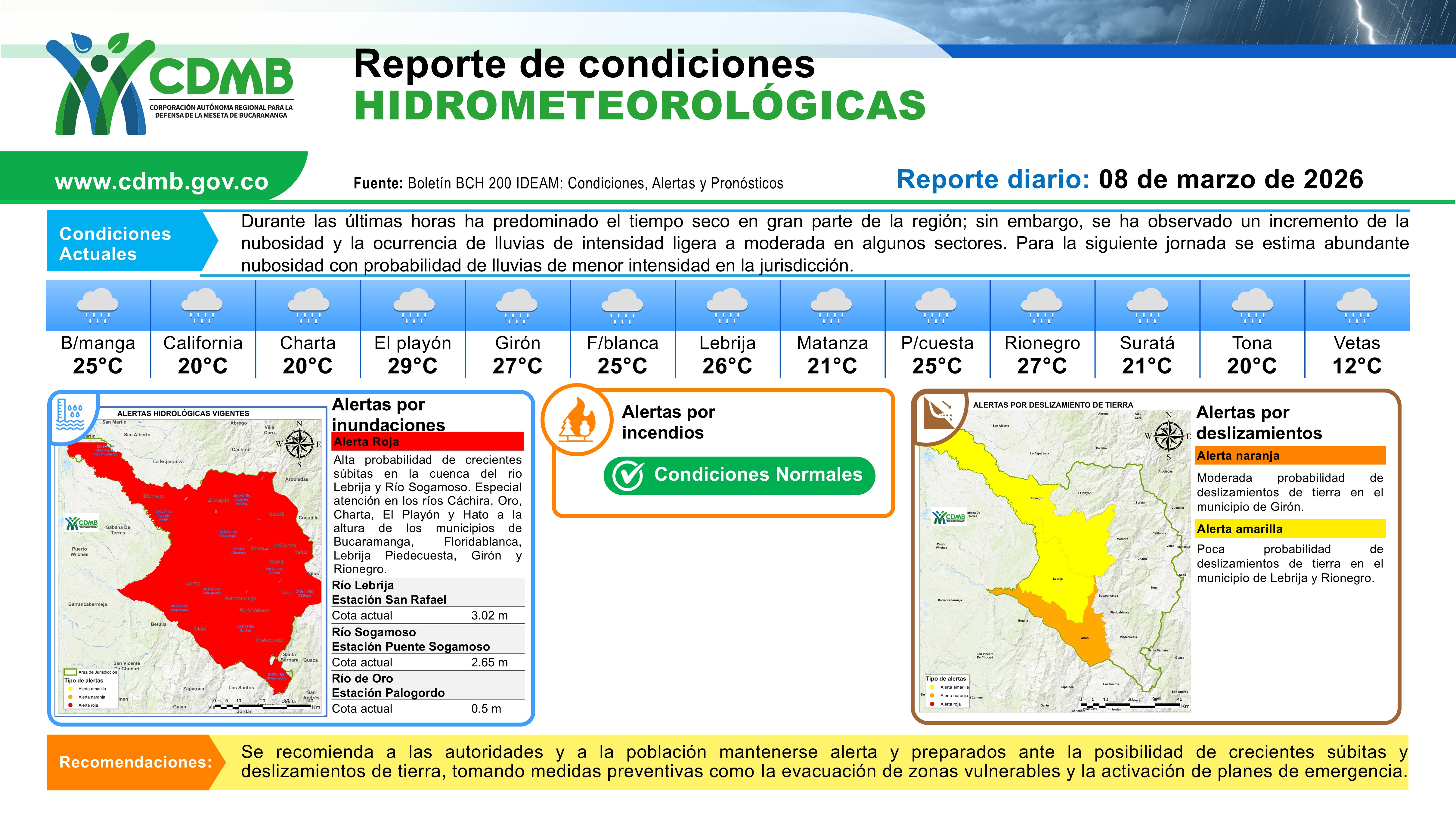 Reporte Alertas Hidrometereologicas 08 de marzo 2026