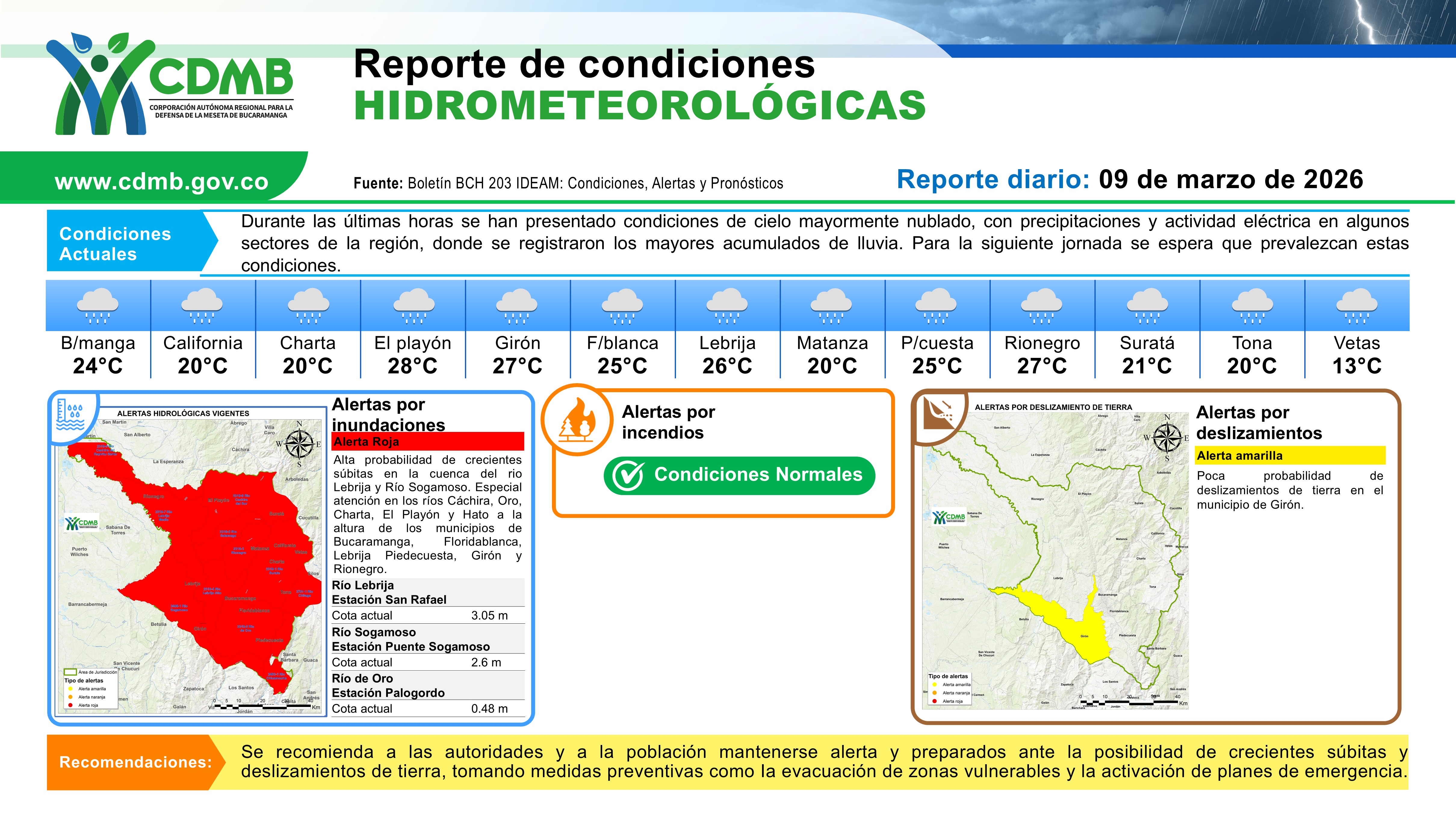 Reporte Alertas Hidrometereologicas 09 de marzo 2026