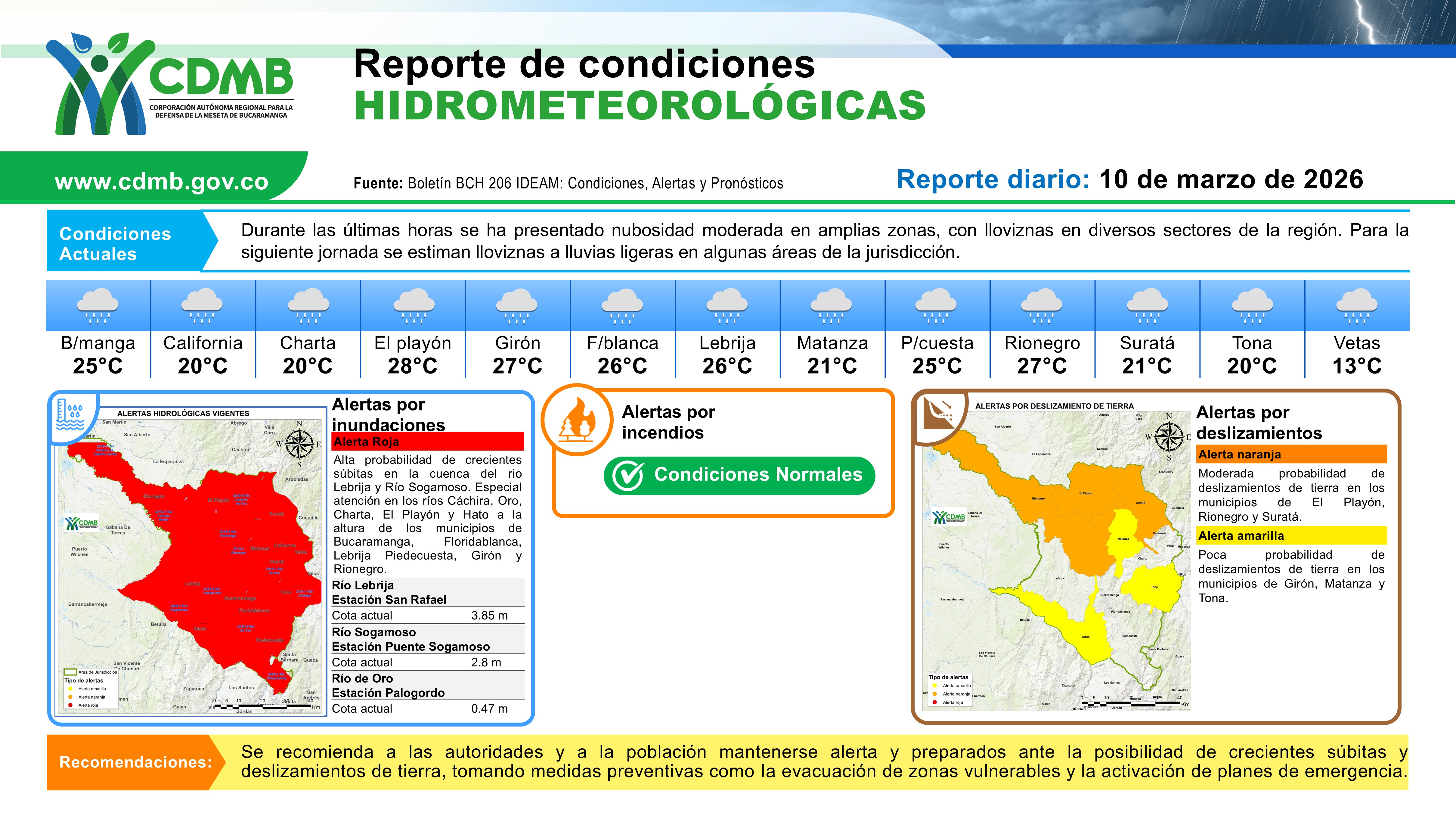 Reporte Alertas Hidrometereologicas 10 de marzo 2026
