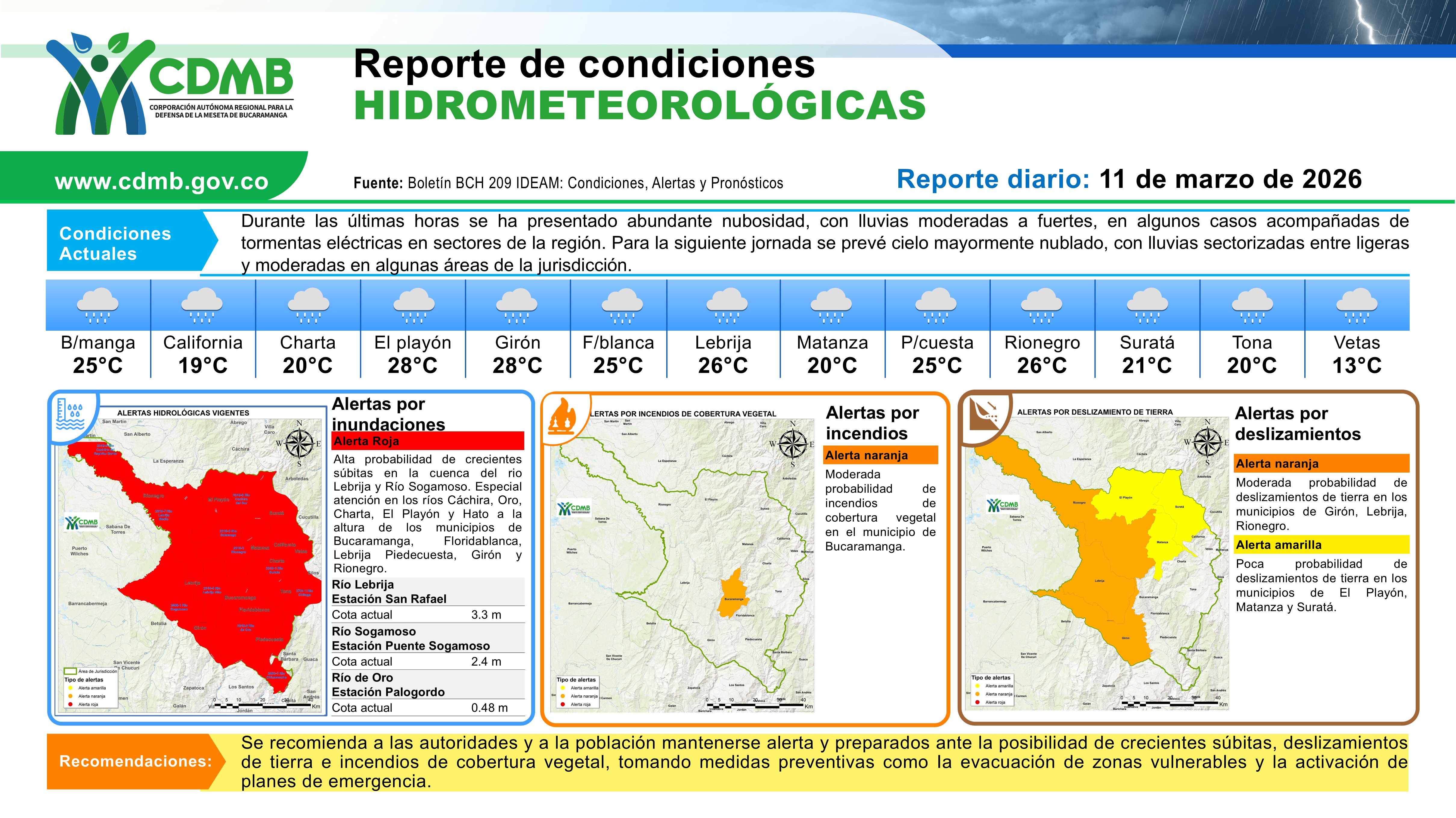 Reporte Alertas Hidrometereologicas 11 de marzo 2026