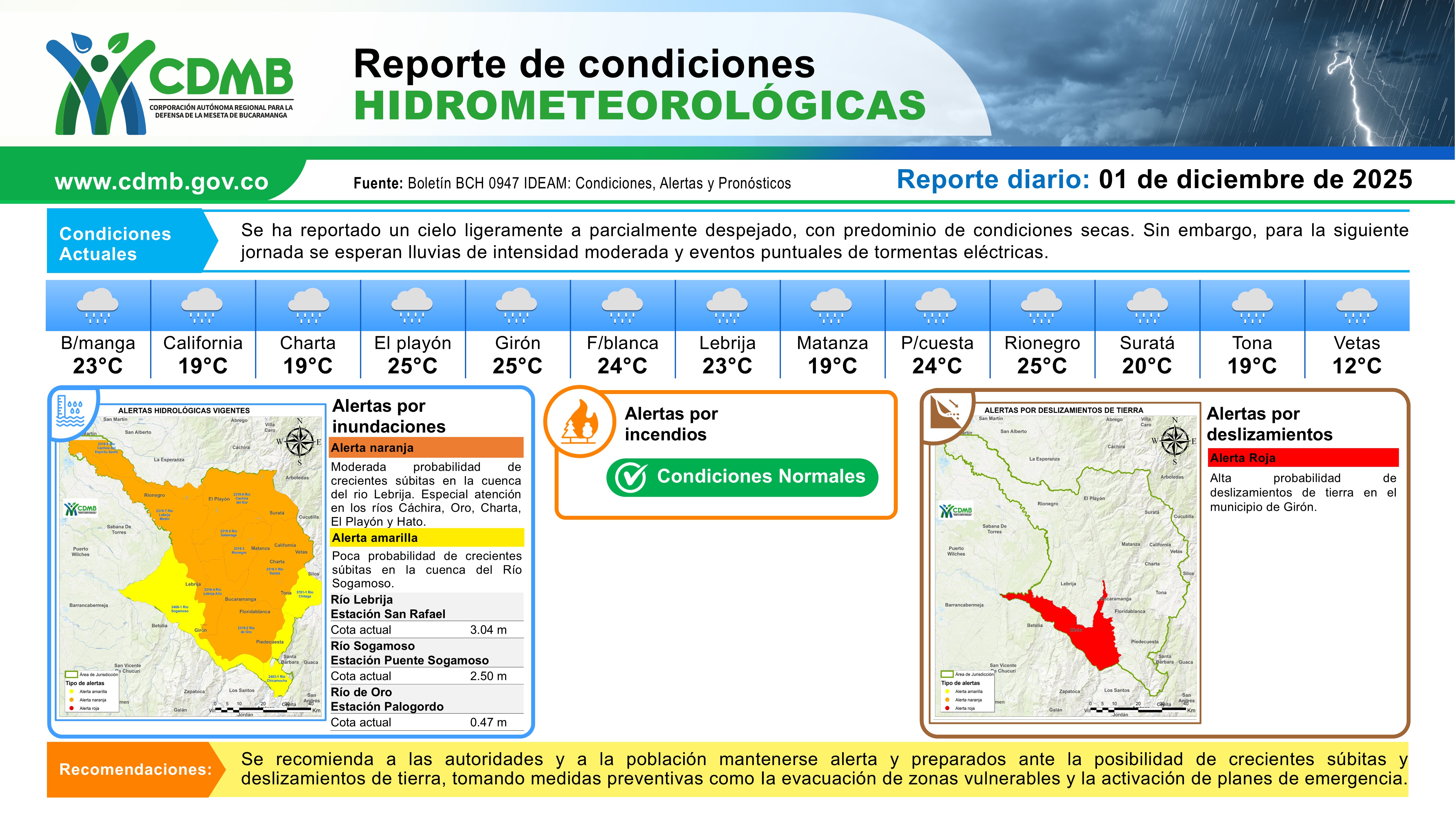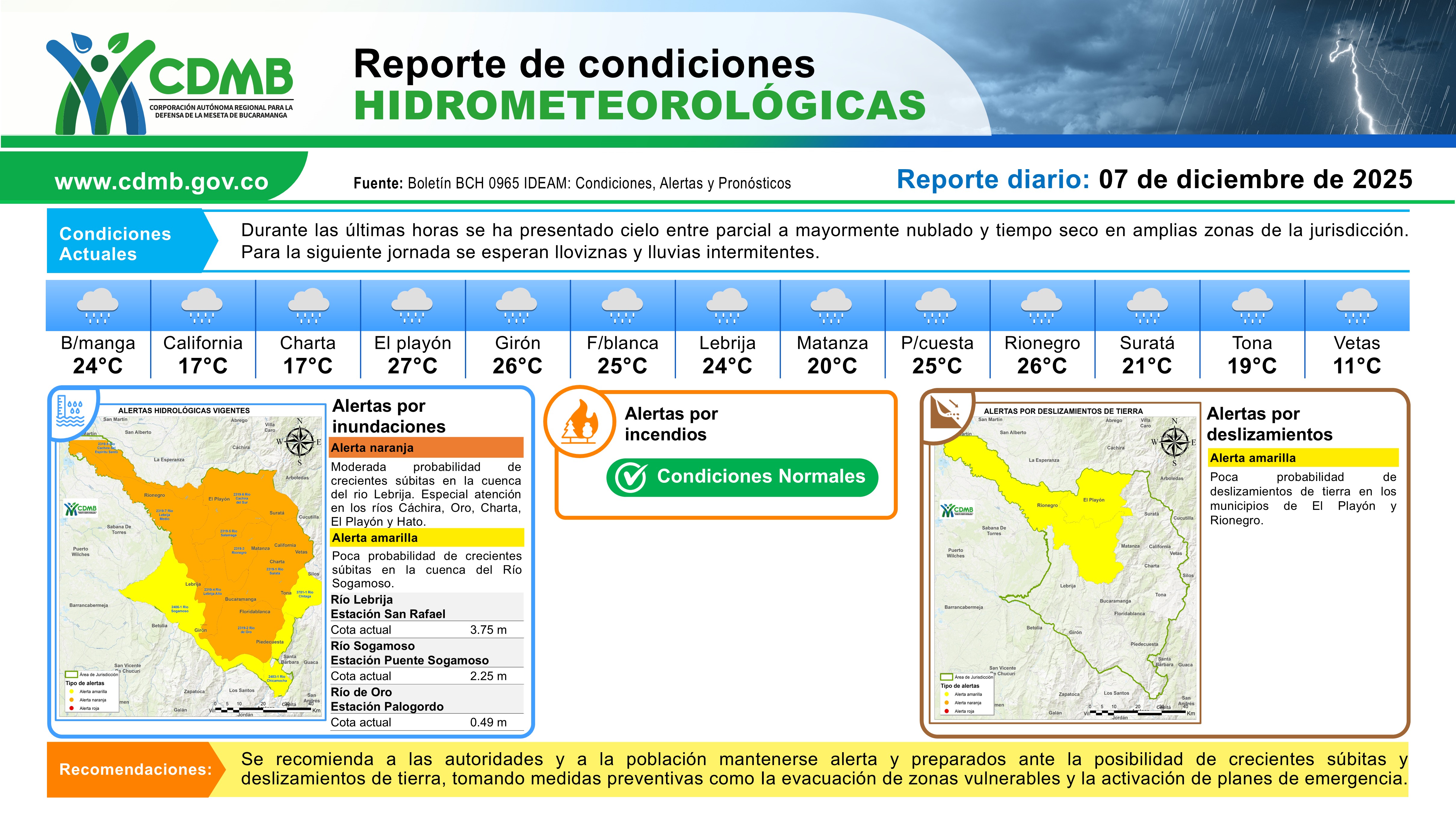 Reporte Alertas Hidrometereologicas 25 de diciembre