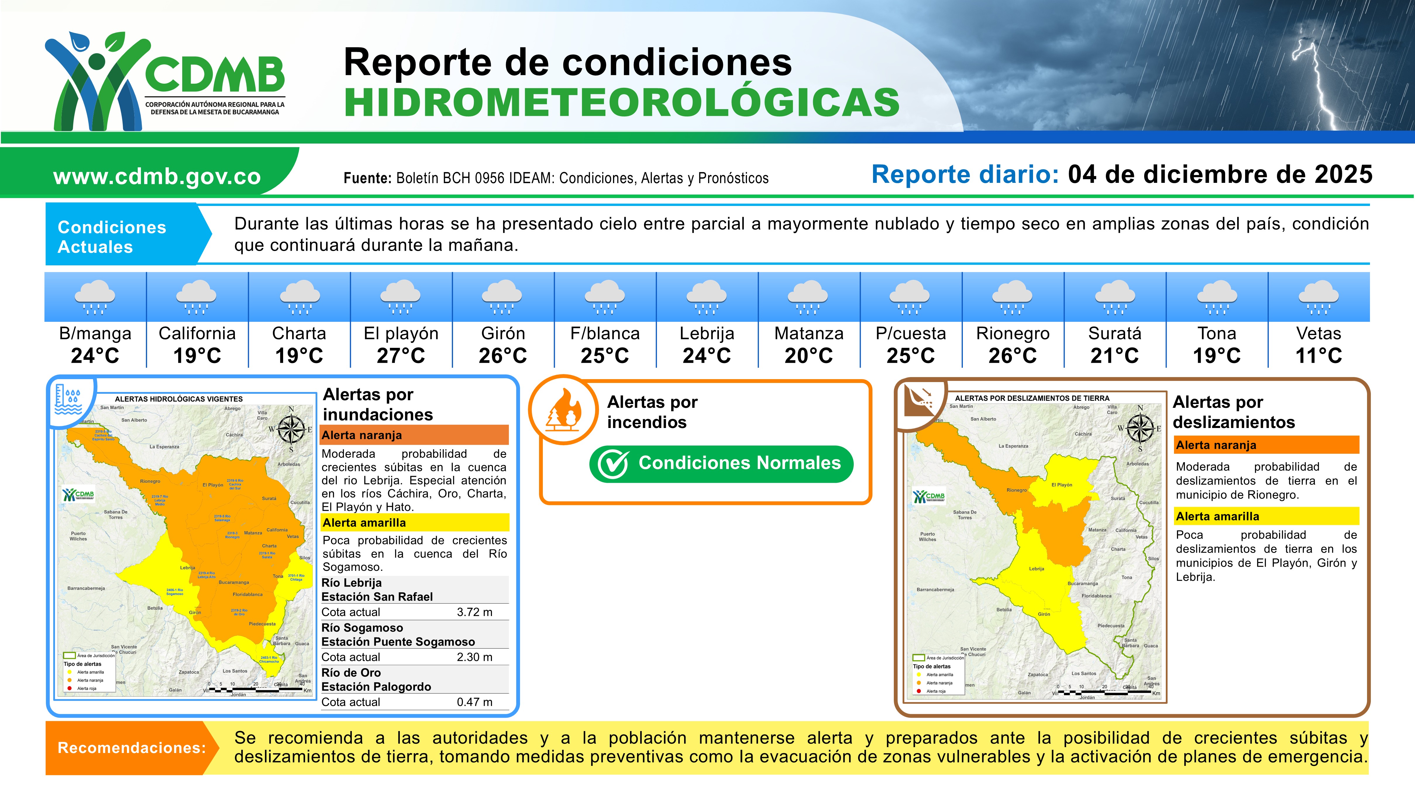 Reporte Alertas Hidrometeorológicas 04 de diciembre