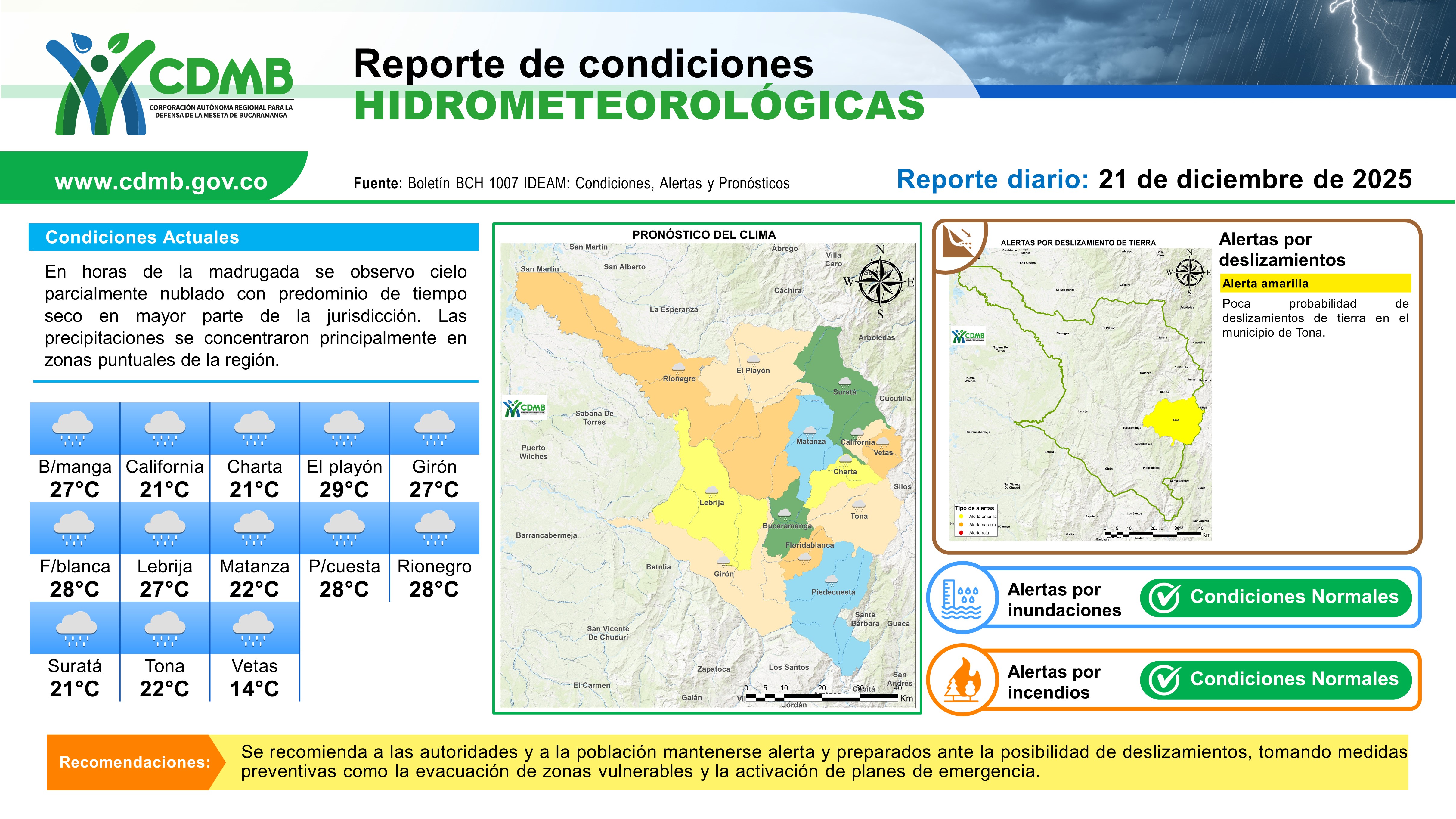 Reporte Alertas Hidrometereologicas 21 de diciembre
