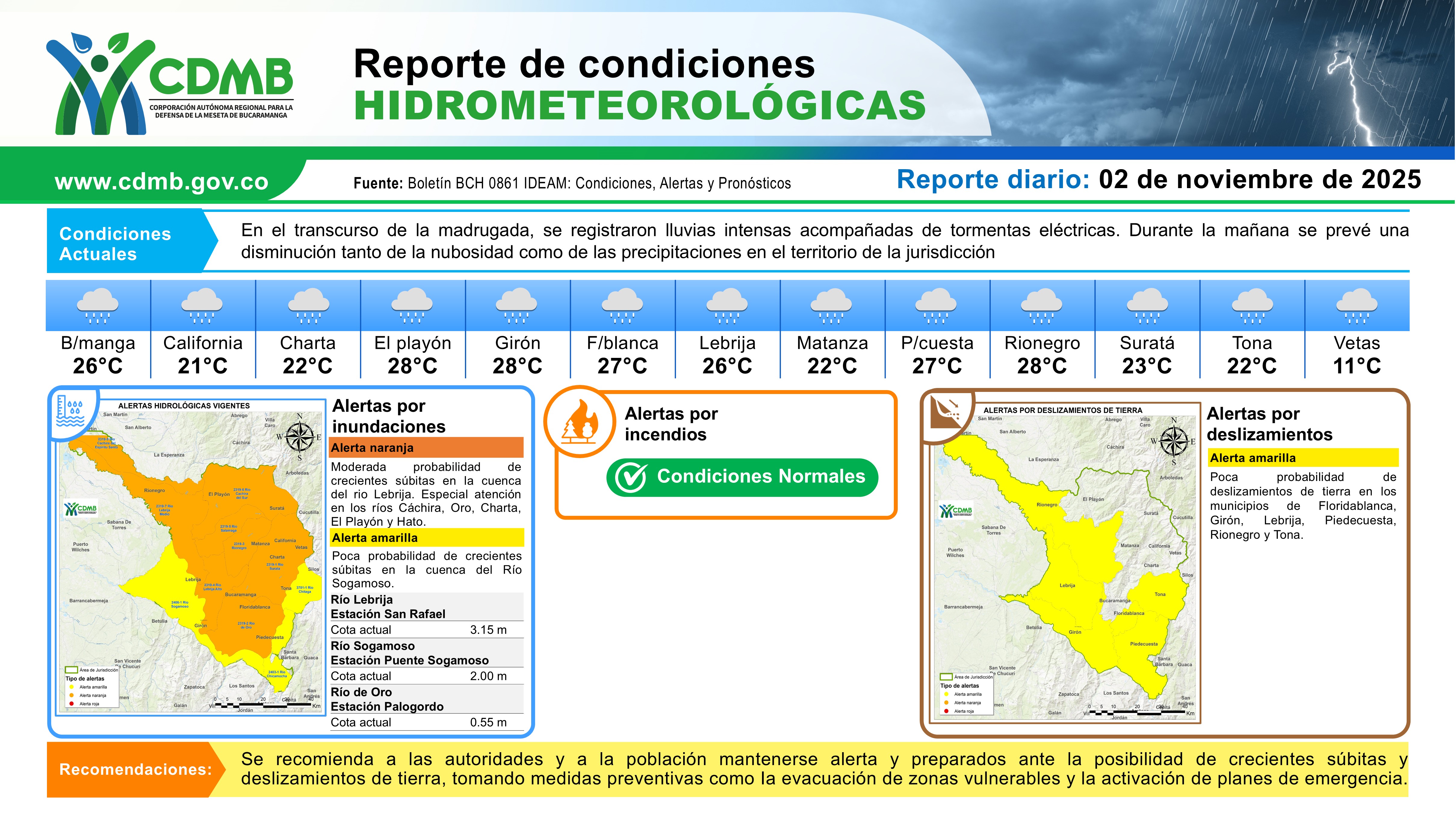 Reporte Alertas Hidrometeorológicas 02 de noviembre