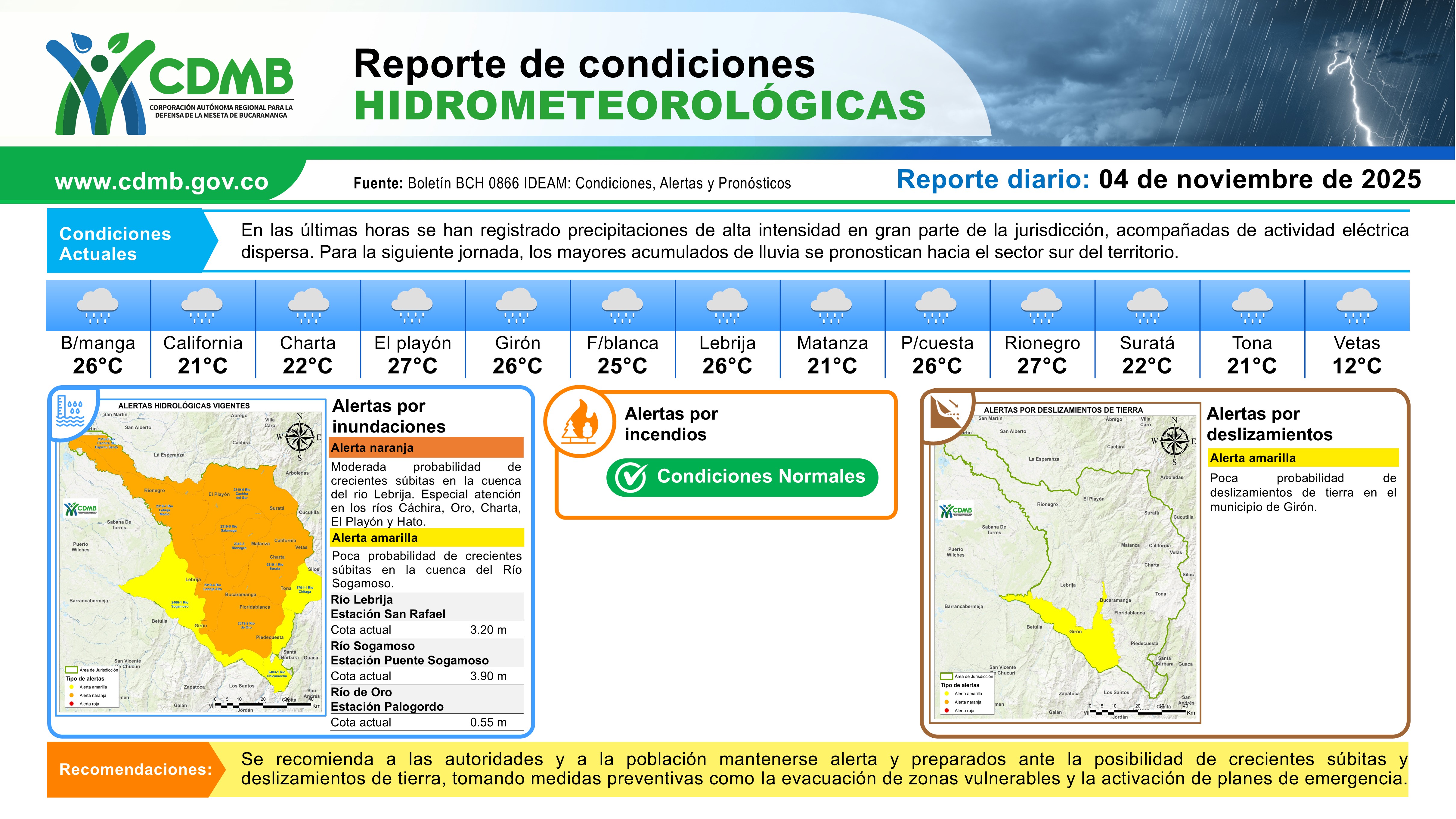 Reporte Alertas Hidrometeorológicas 04 de noviembre