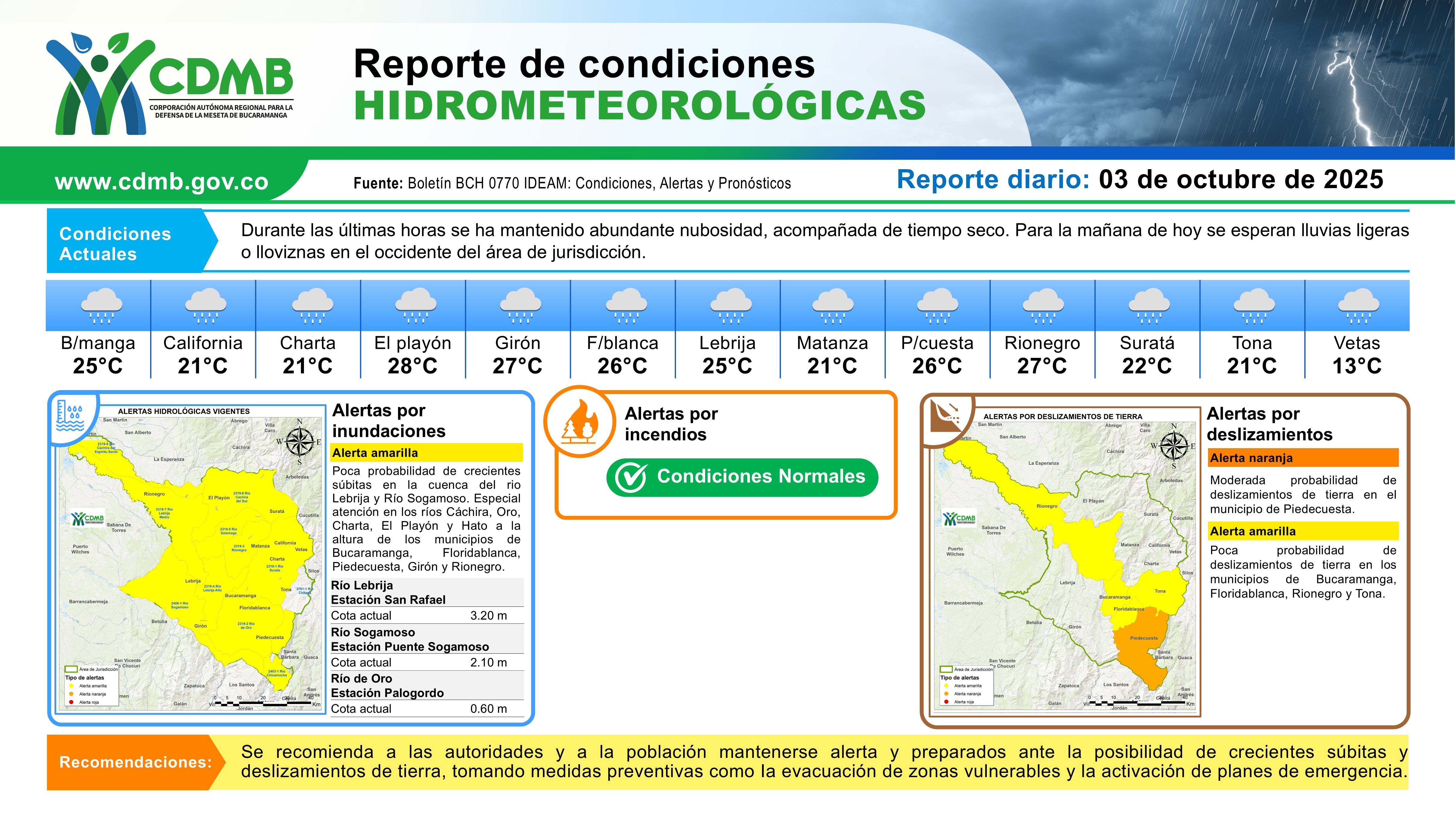 Reporte Alertas Hidrometeorológicas 03 de octubre