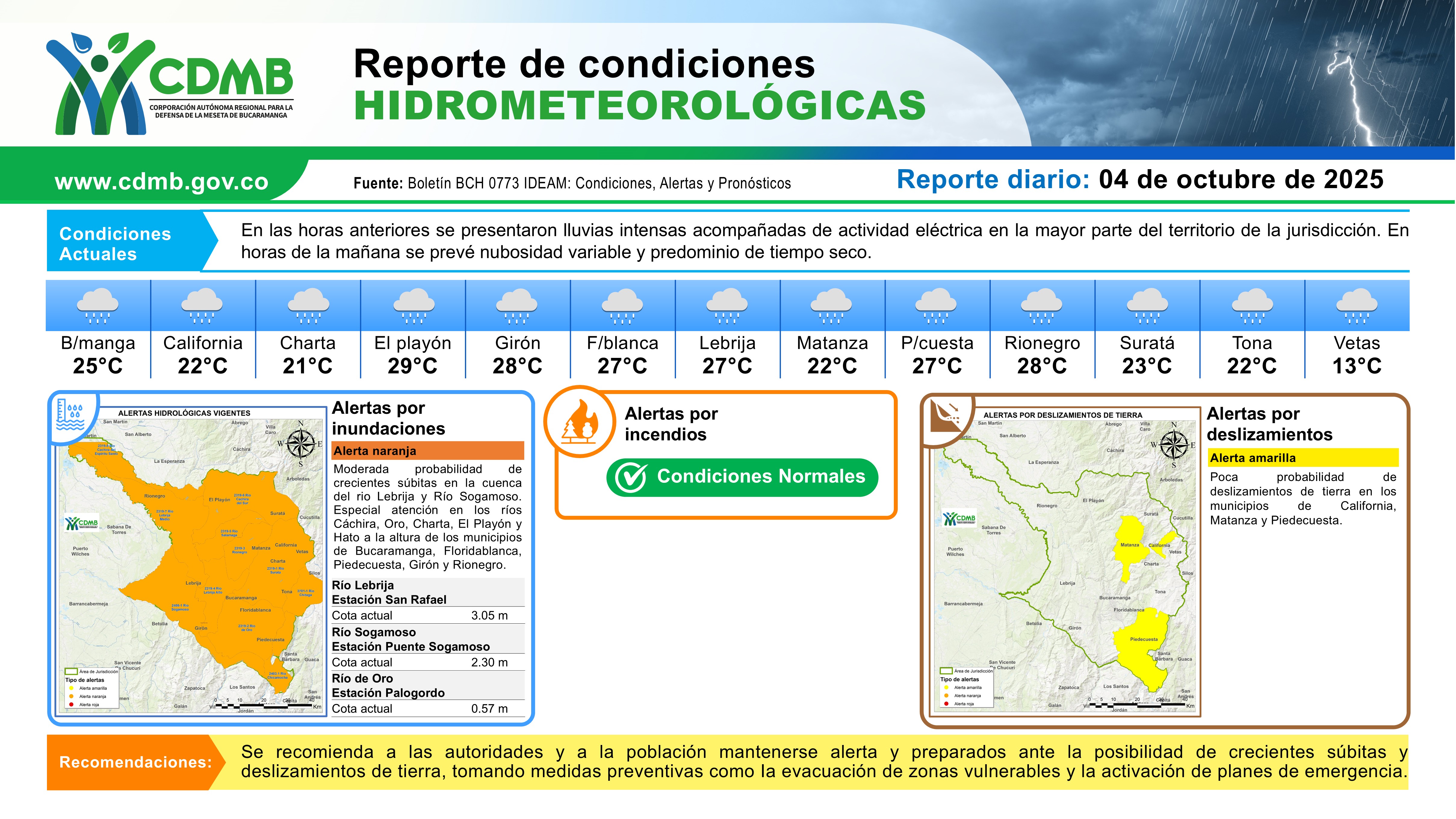 Reporte Alertas Hidrometeorológicas 04 de octubre