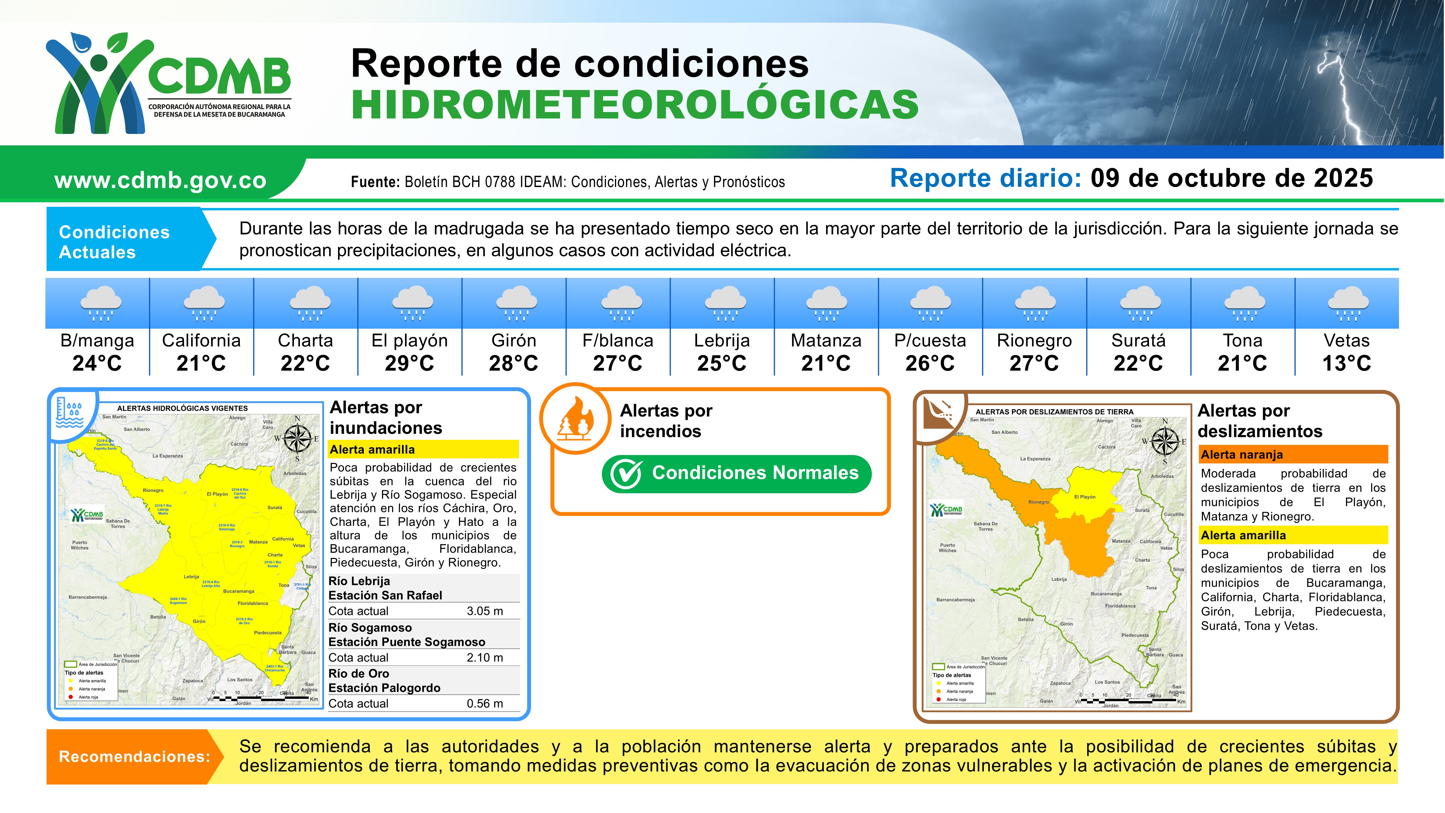 Reporte Alertas Hidrometeorológicas 09 de octubre