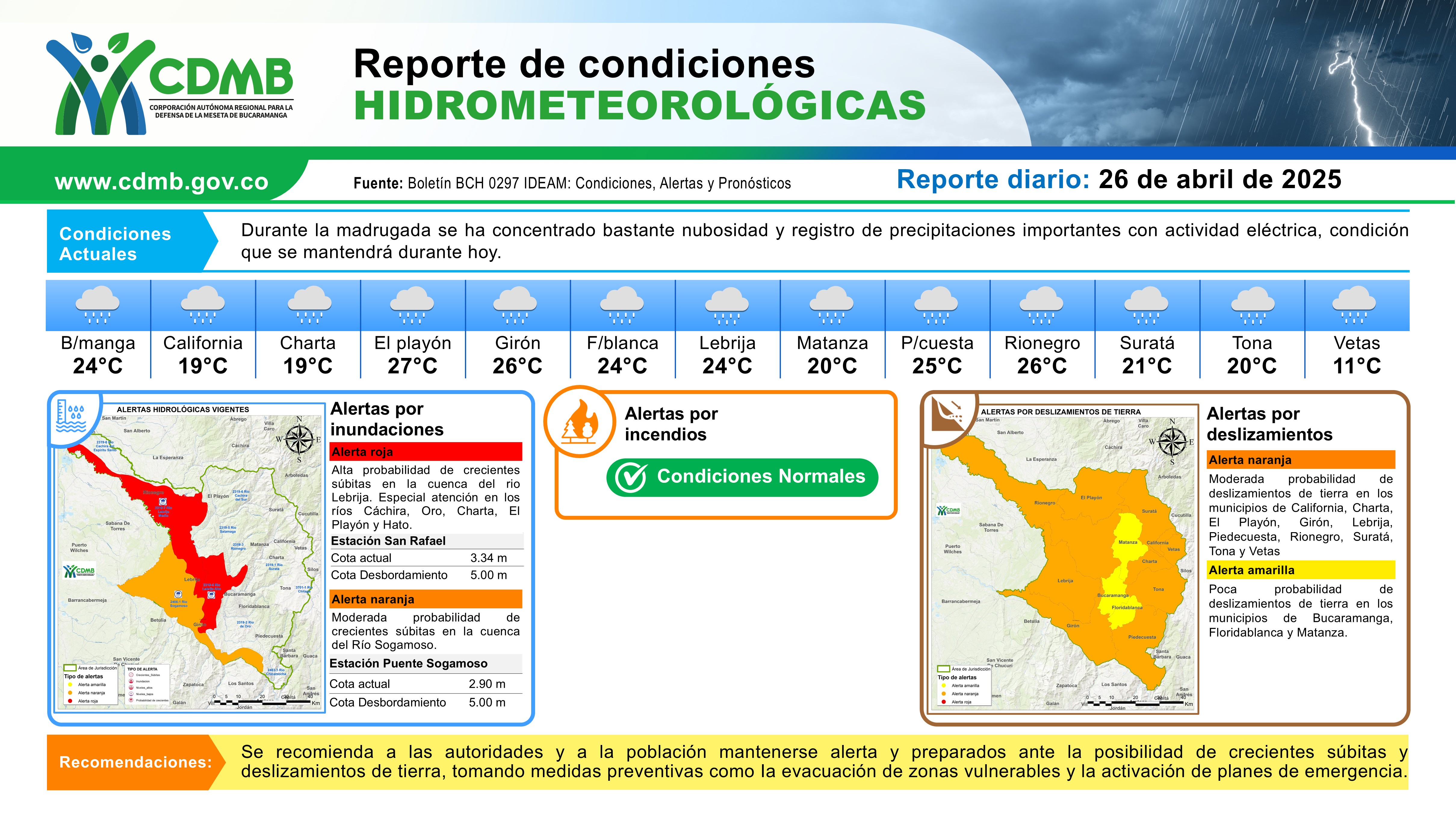 Reporte Alertas Hidrometeorológicas 26 de abril