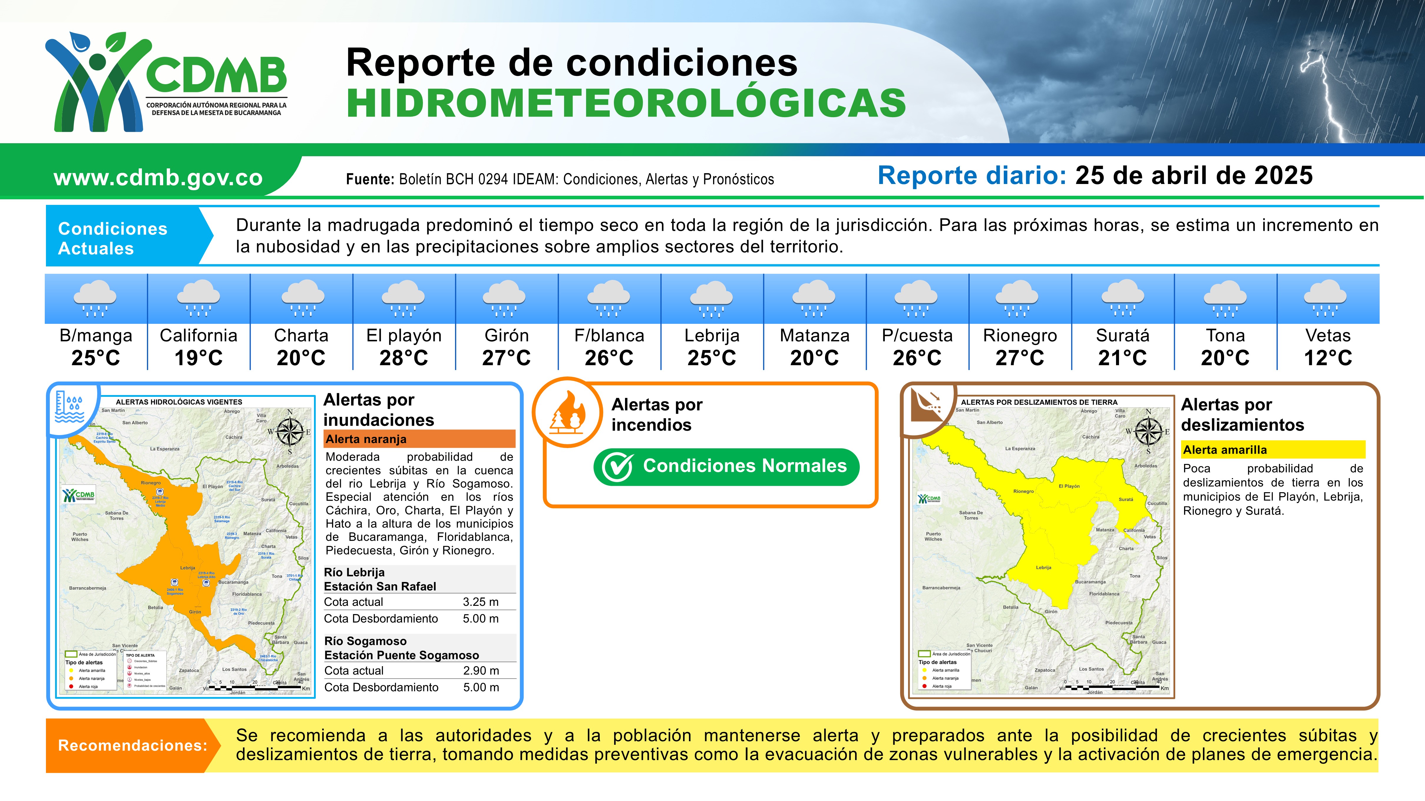 Reporte Alertas Hidrometeorológicas 25 de abril