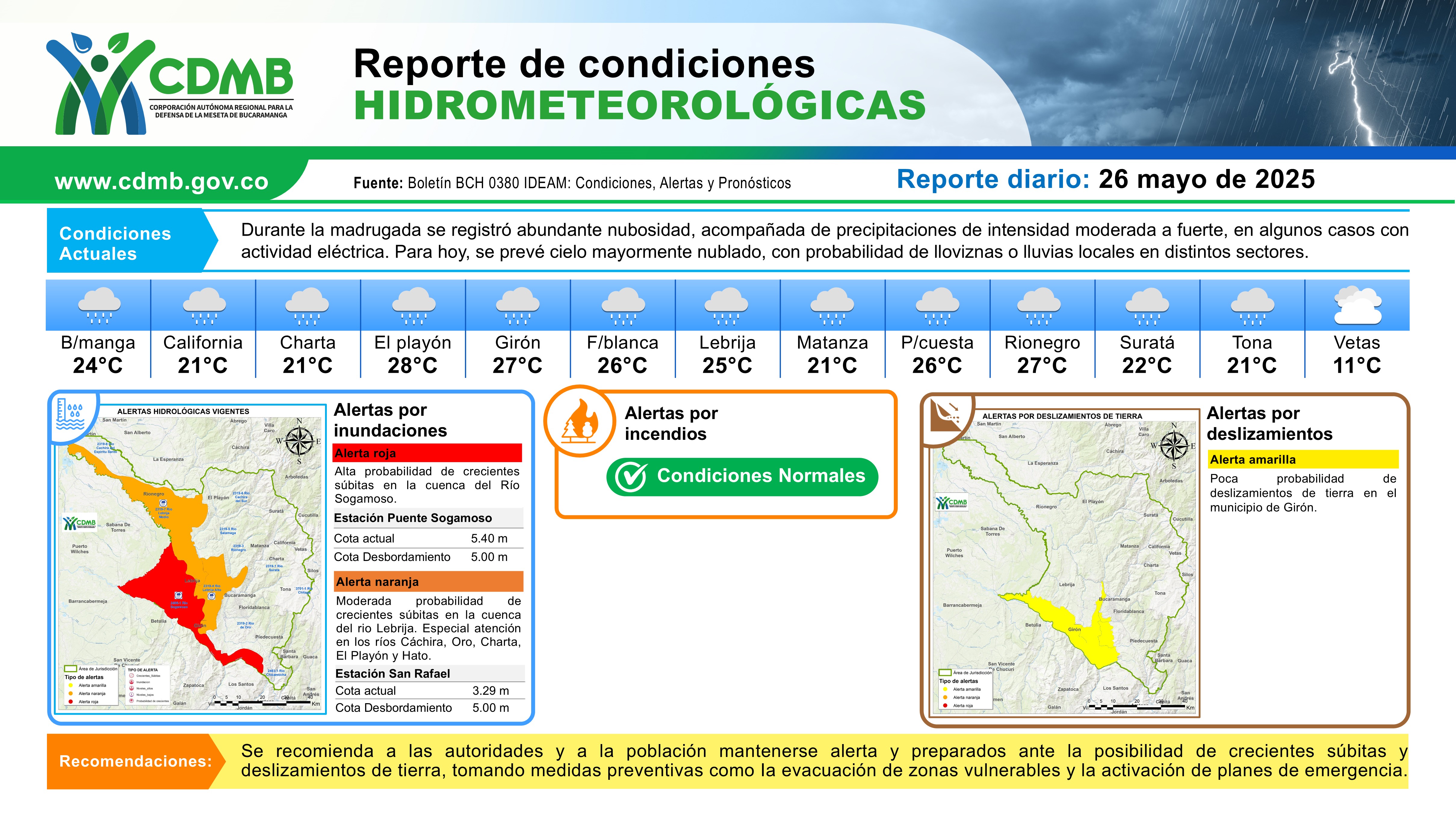 Reporte Alertas Hidrometeorológicas 26 de mayo