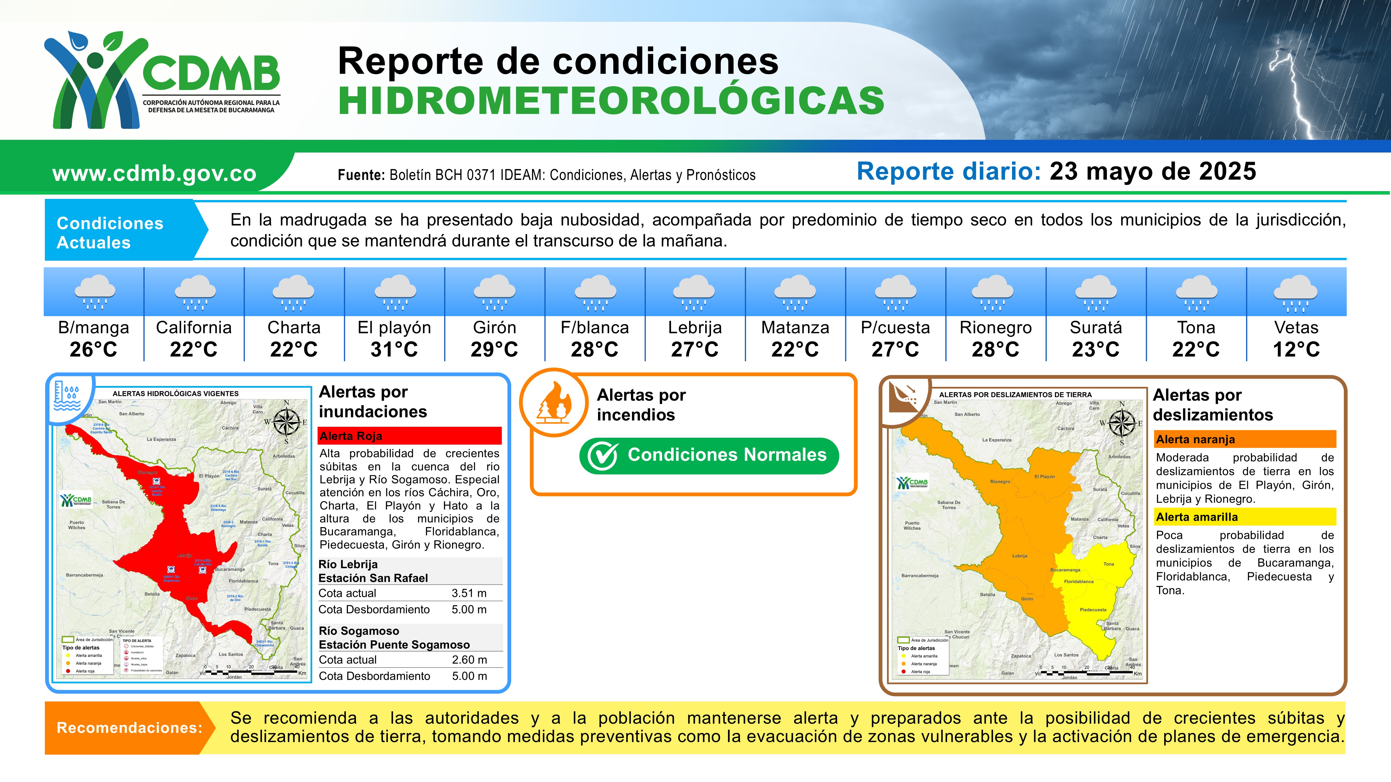 Reporte Alertas Hidrometeorológicas 23 de mayo