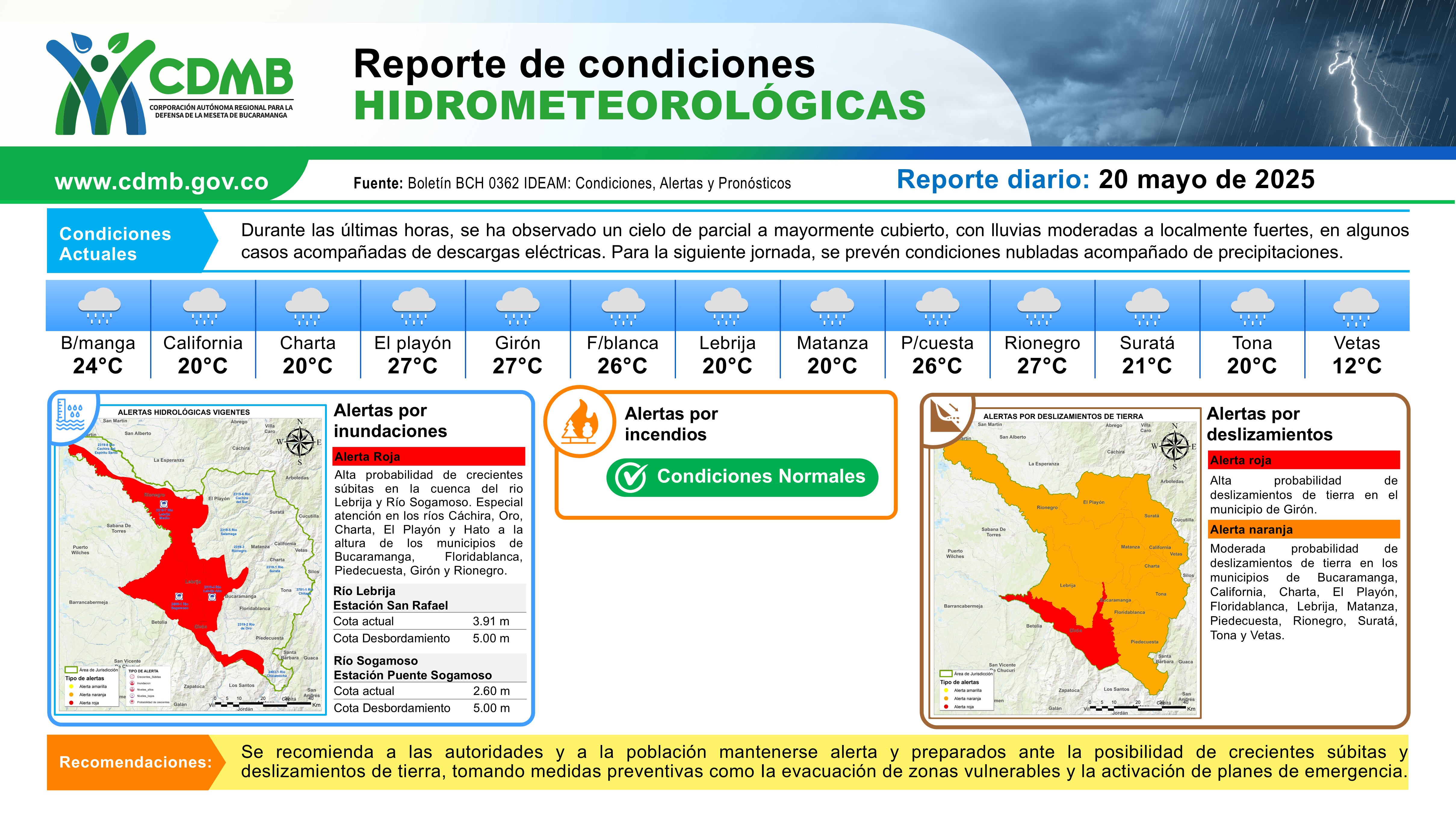 Reporte Alertas Hidrometeorológicas 20 de mayo