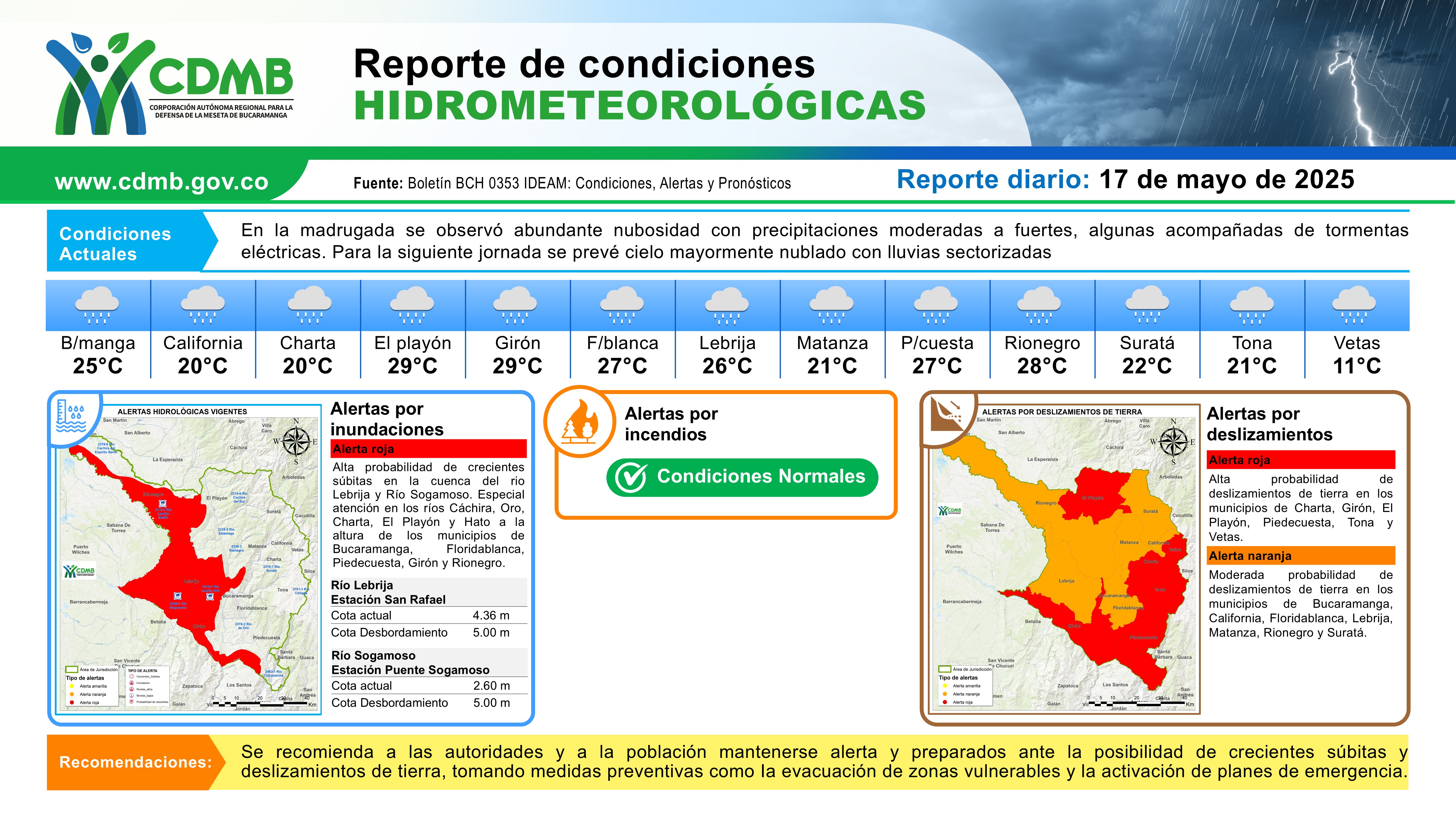 Reporte Alertas Hidrometeorológicas 17 de mayo