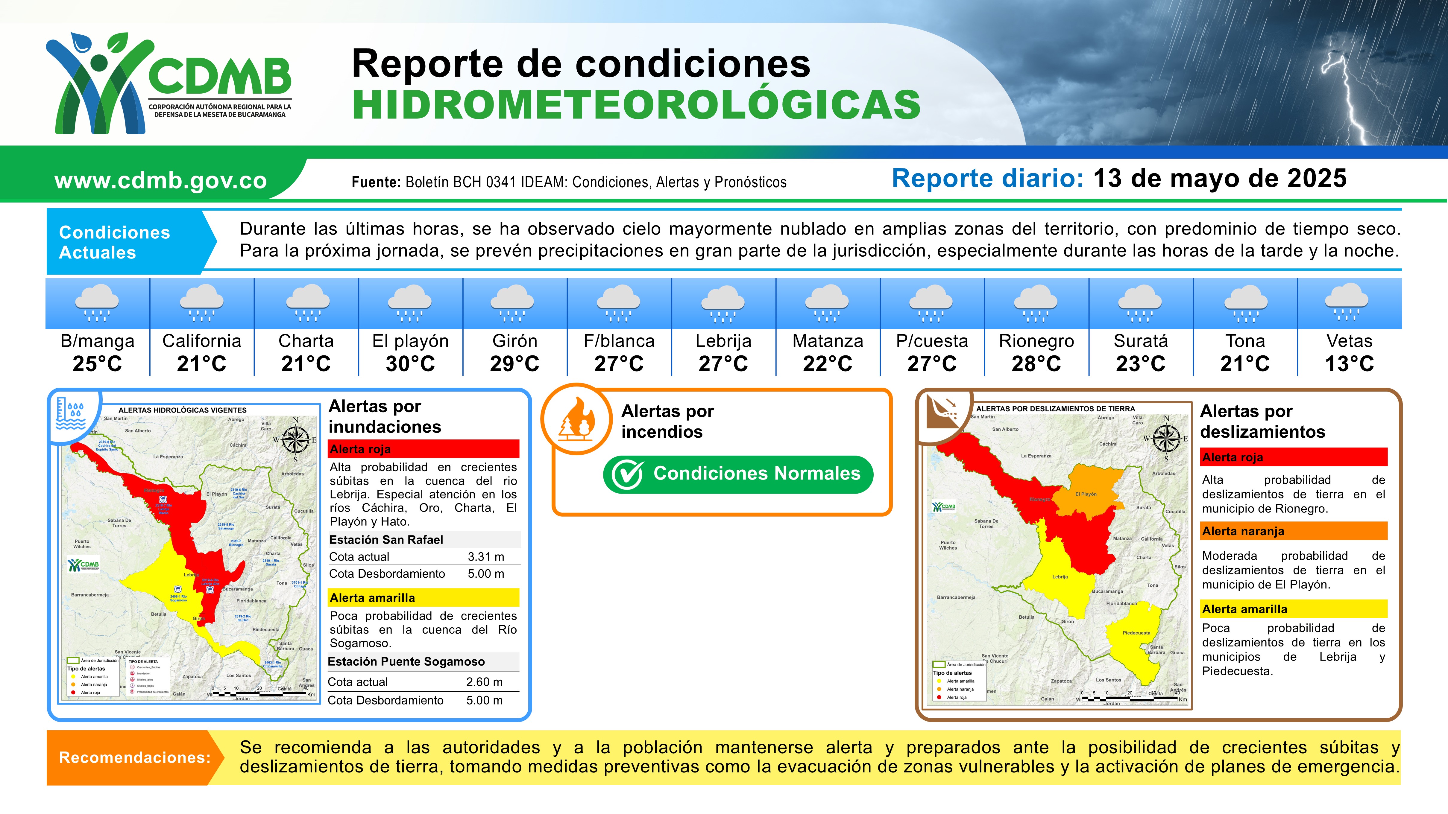 Reporte Alertas Hidrometeorológicas 13 de mayo