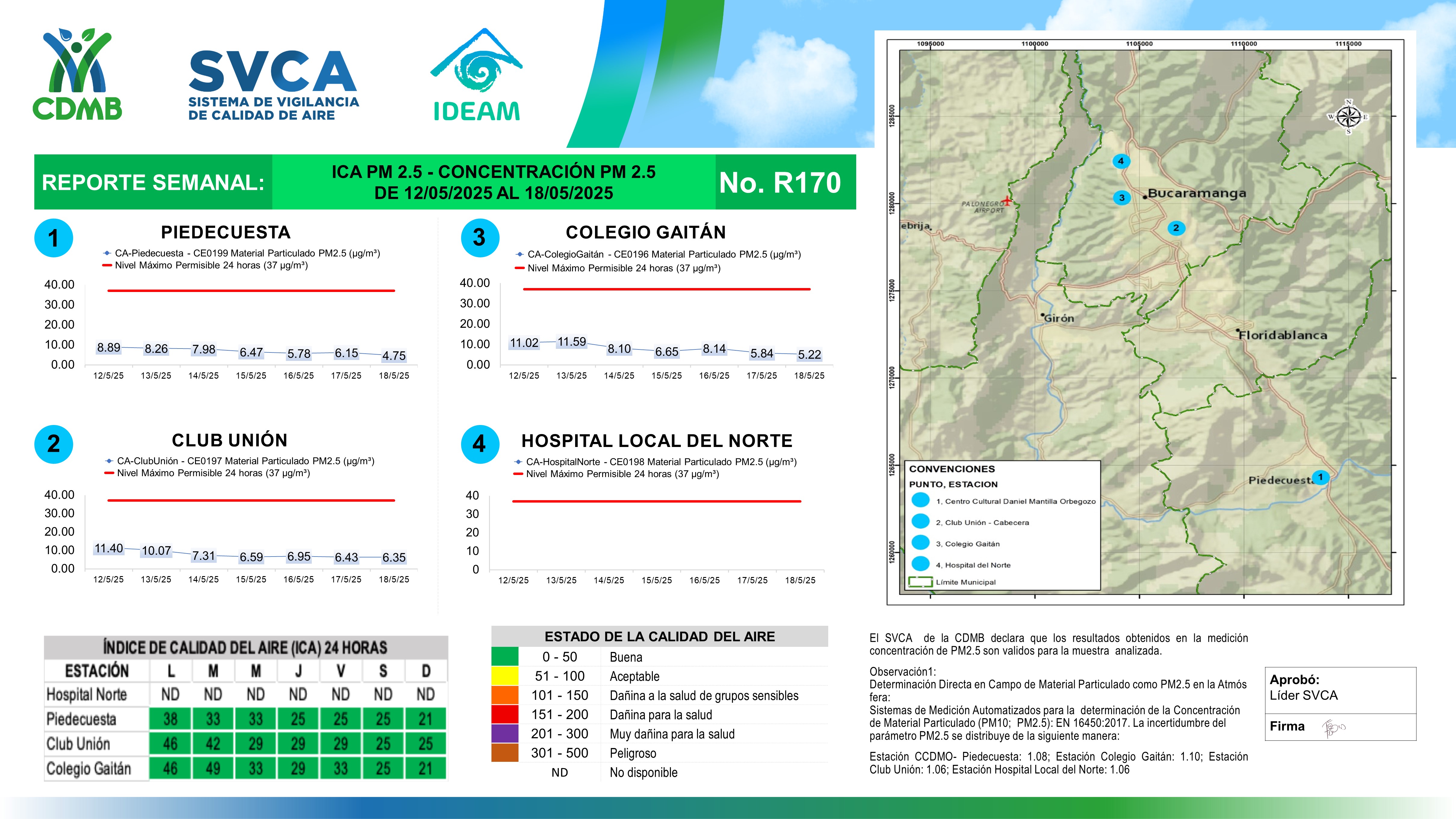 Reporte Semanal N° 170 — Índice de Calidad del Aire - Concentración PM 2.5