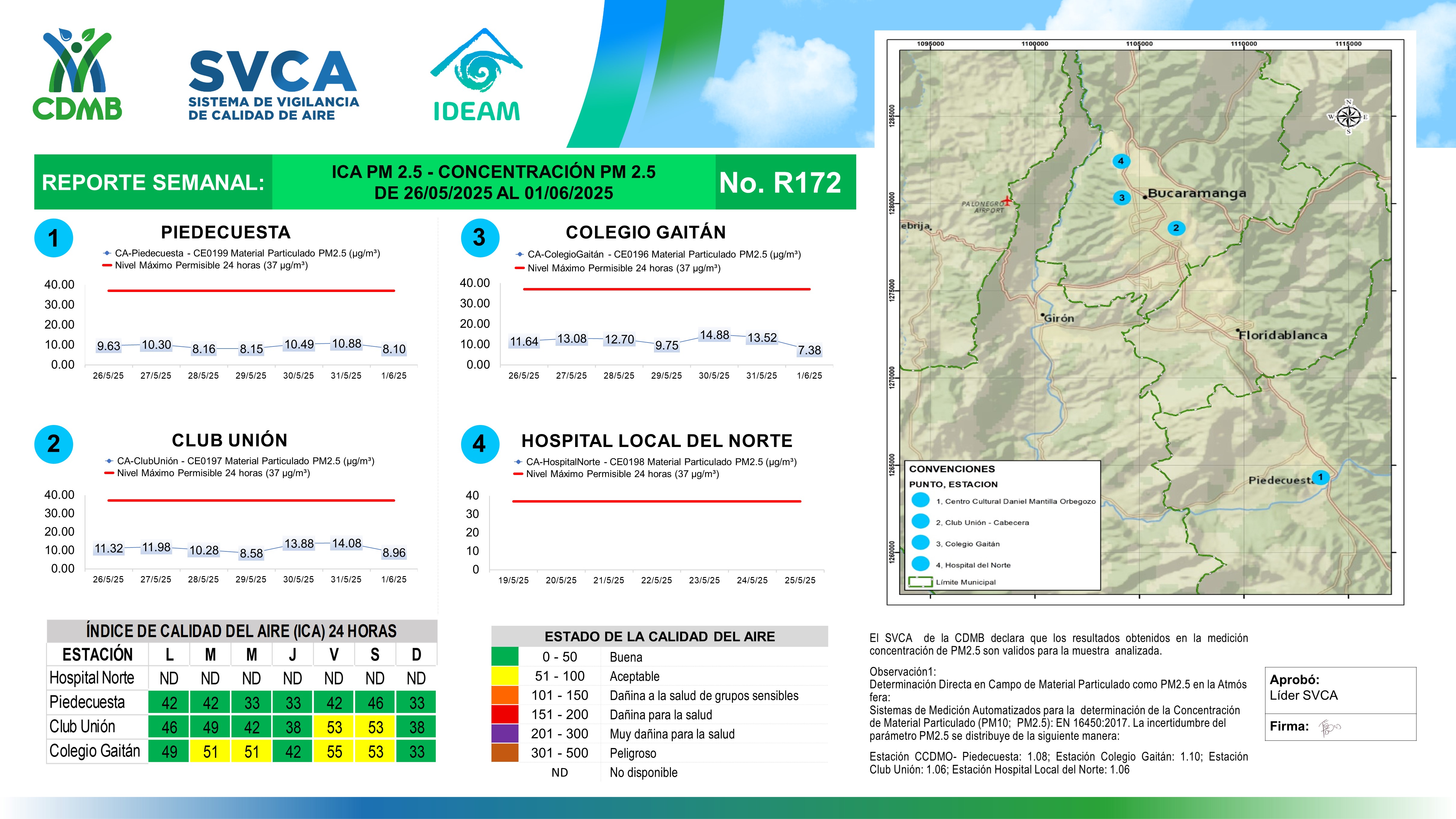 Reporte Semanal N° 172 — Índice de Calidad del Aire - Concentración PM 2.5 — 26/05/2025–01/06/2025