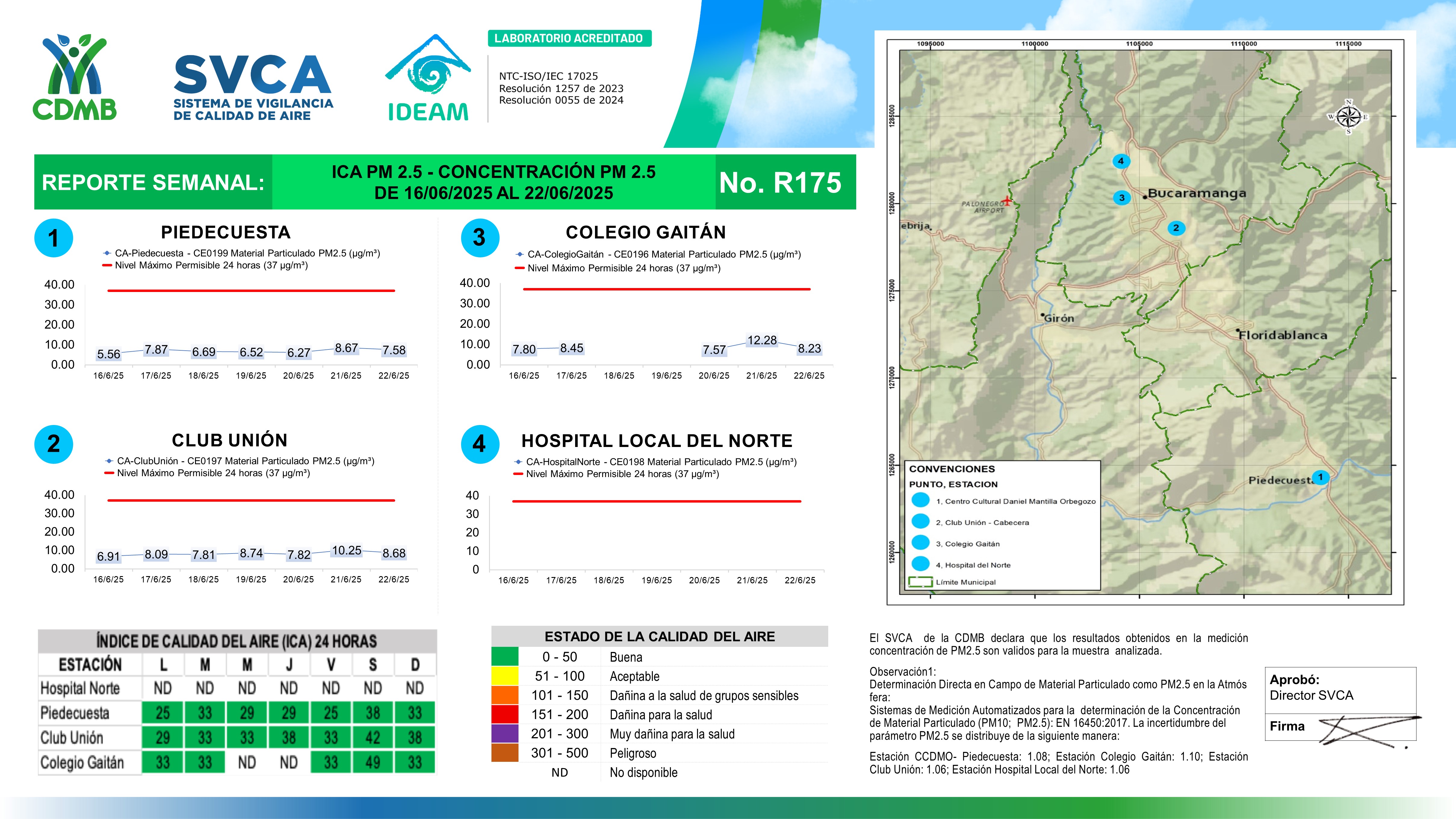 Reporte Semanal N° 175 — Índice de Calidad del Aire - Concentración PM 2.5 — 16/06/2025–22/06/2025