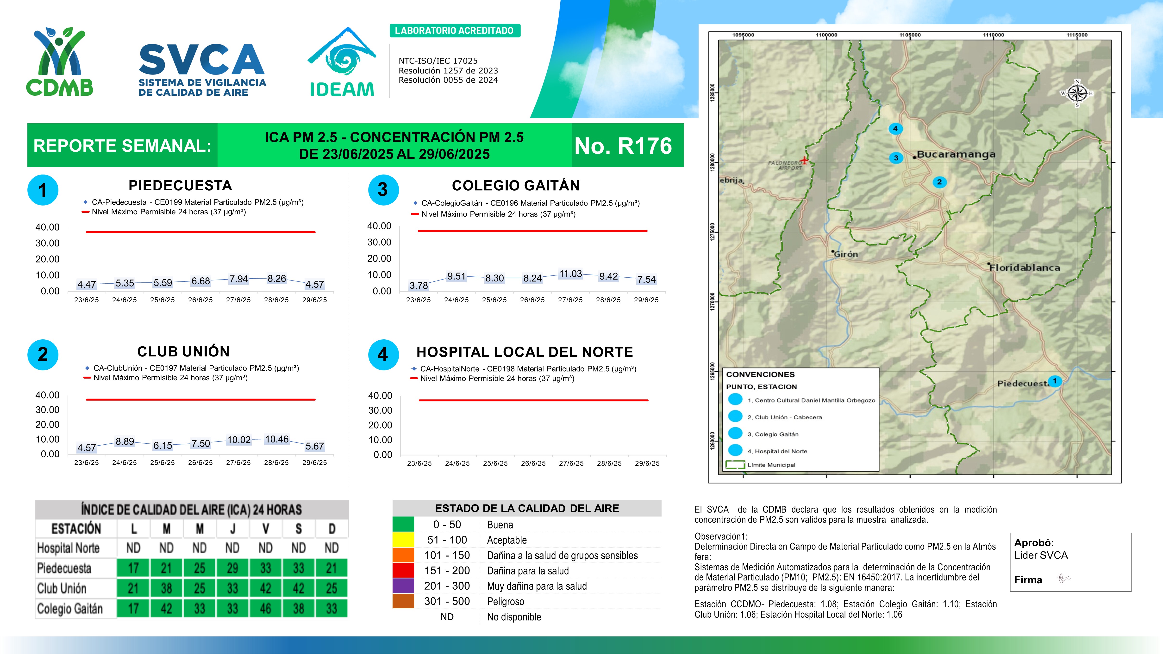 Reporte Semanal N° 176 — Índice de Calidad del Aire - Concentración PM 2.5 — 23/06/2025–29/06/2025