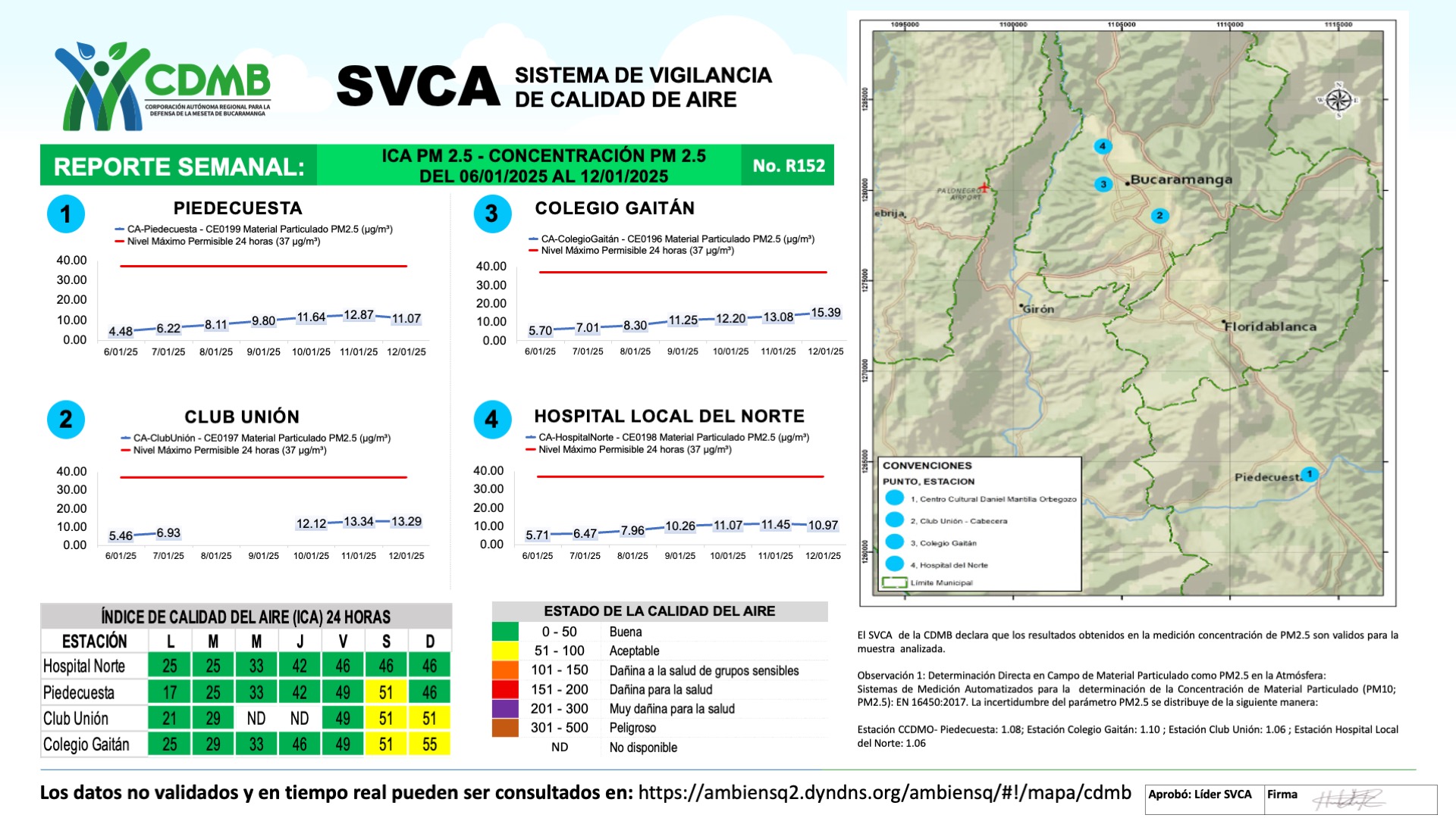 Reporte Semanal N° 152 — Índice de Calidad del Aire - Concentración PM 2.5
