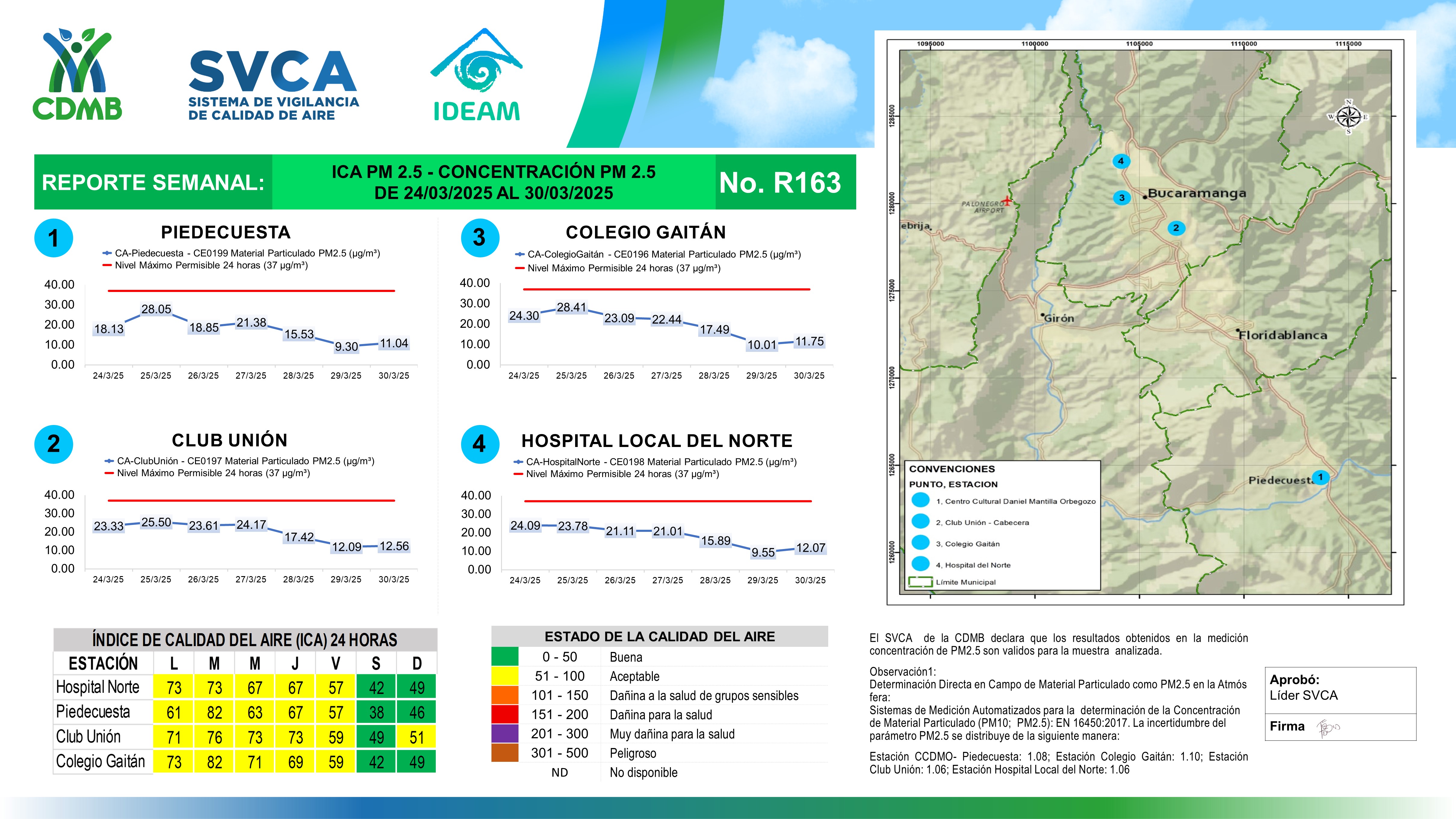 Reporte Semanal N° 163 — Índice de Calidad del Aire - Concentración PM 2.5