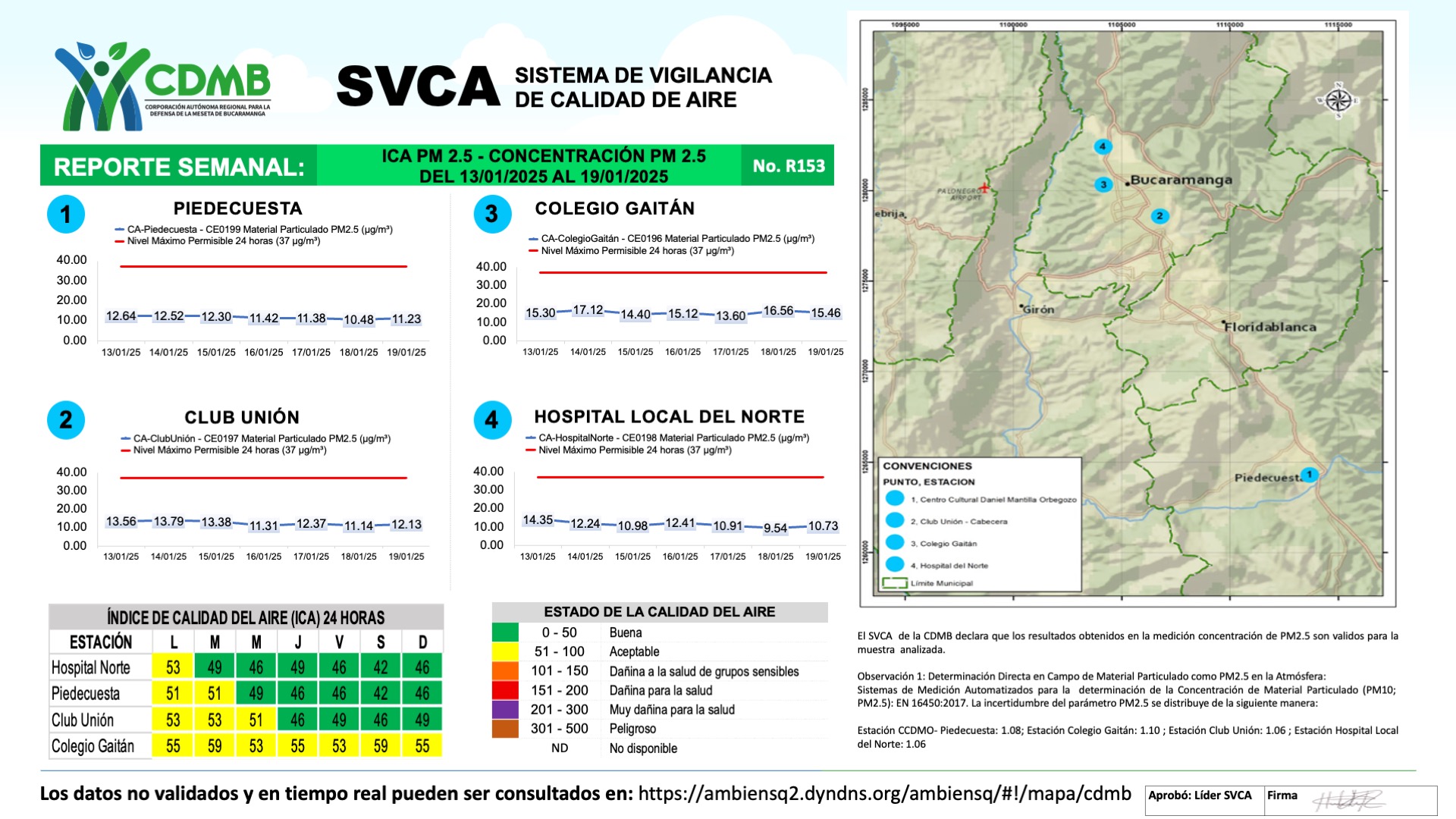 Reporte Semanal N° 153 — Índice de Calidad del Aire - Concentración PM 2.5