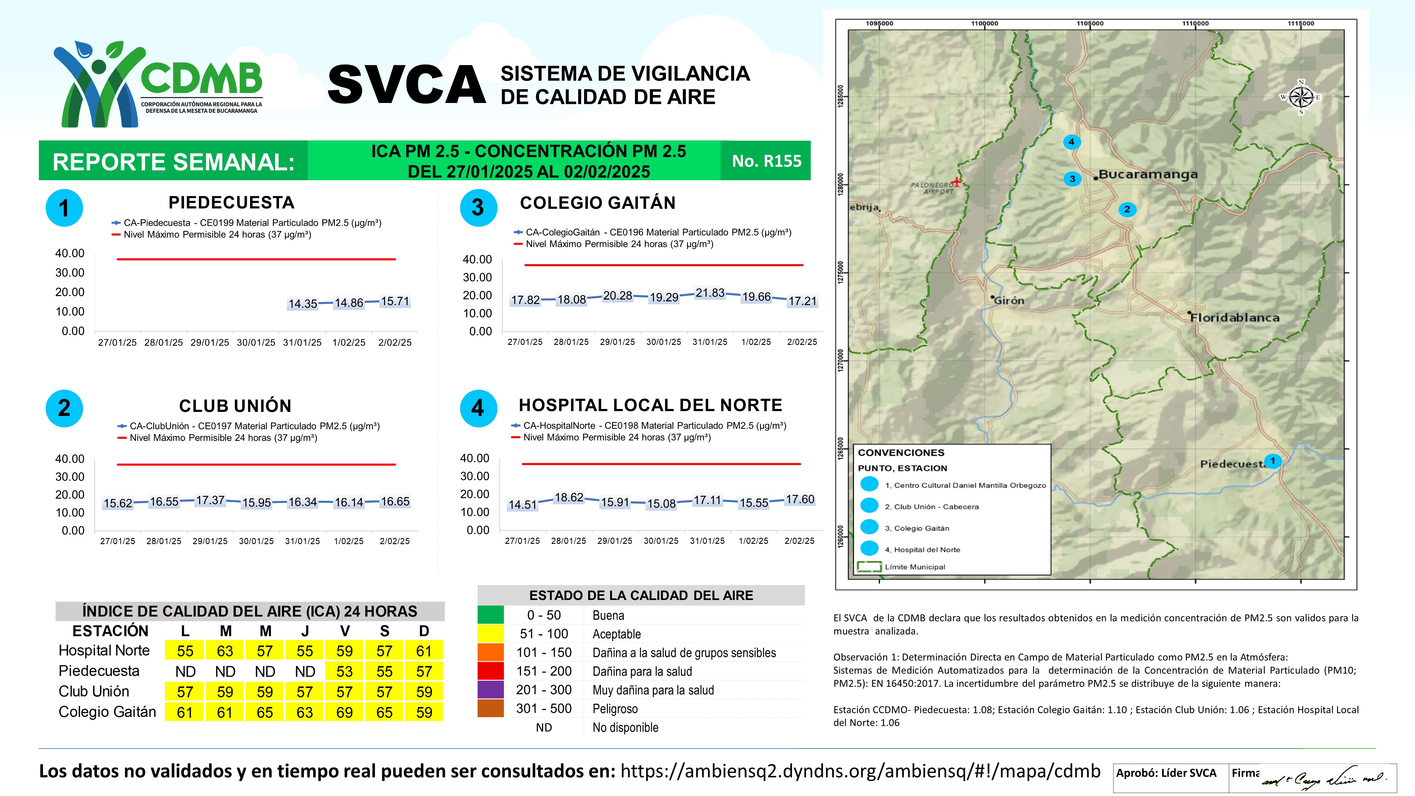 Reporte Semanal N° 155 — Índice de Calidad del Aire - Concentración PM 2.5