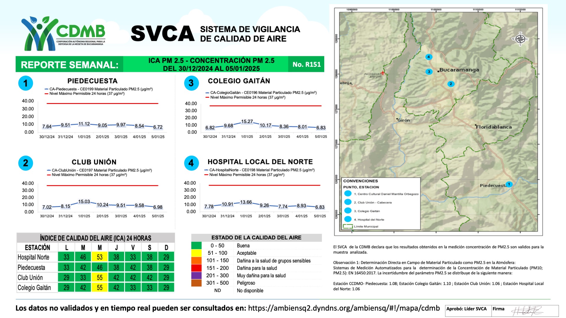 Reporte Semanal N° 151 — Índice de Calidad del Aire - Concentración PM 2.5