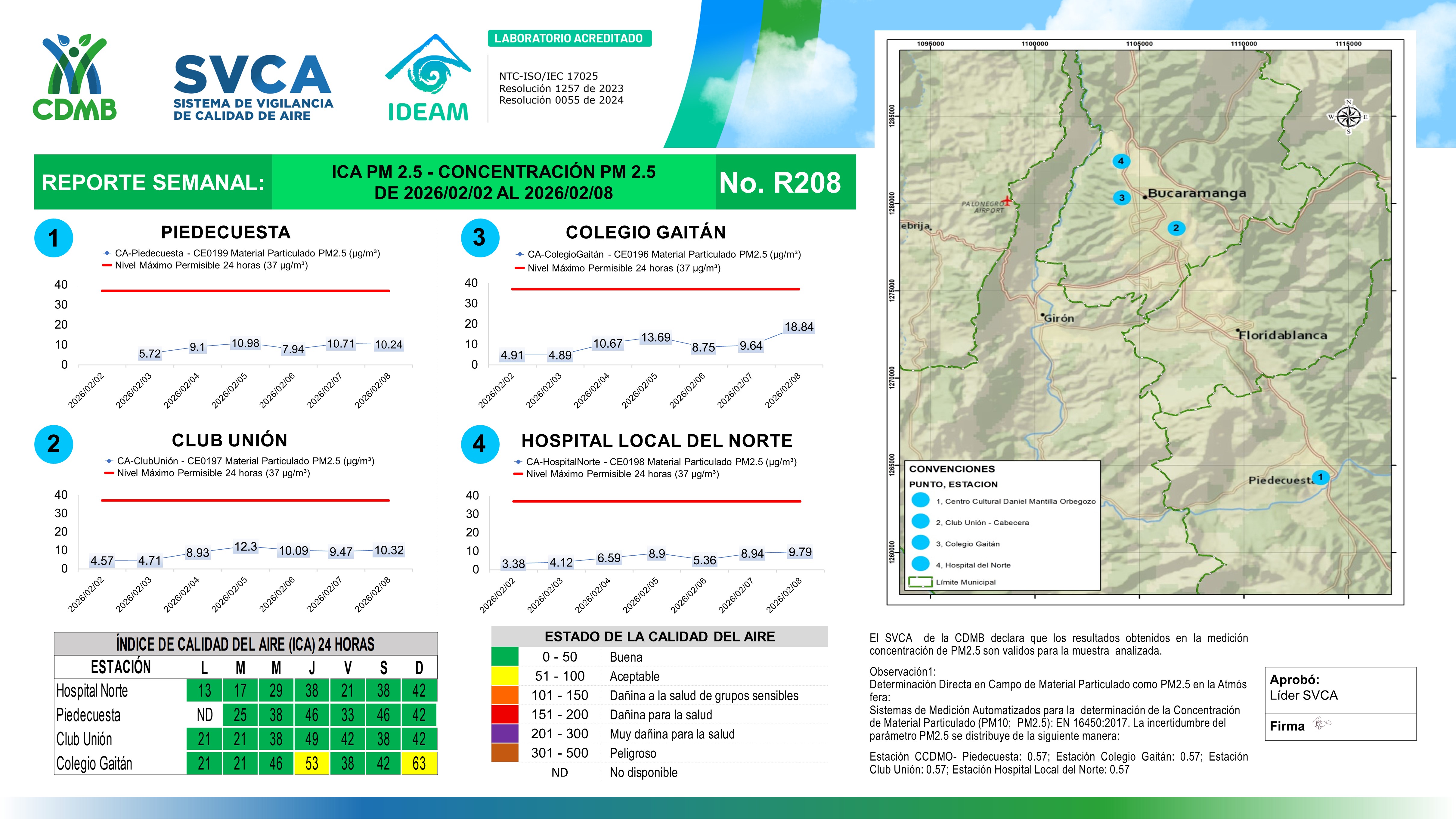 Reporte Semanal N° 208 — Índice de Calidad del Aire Concentración PM 2 5 — 08/02/2026–13/02/2026