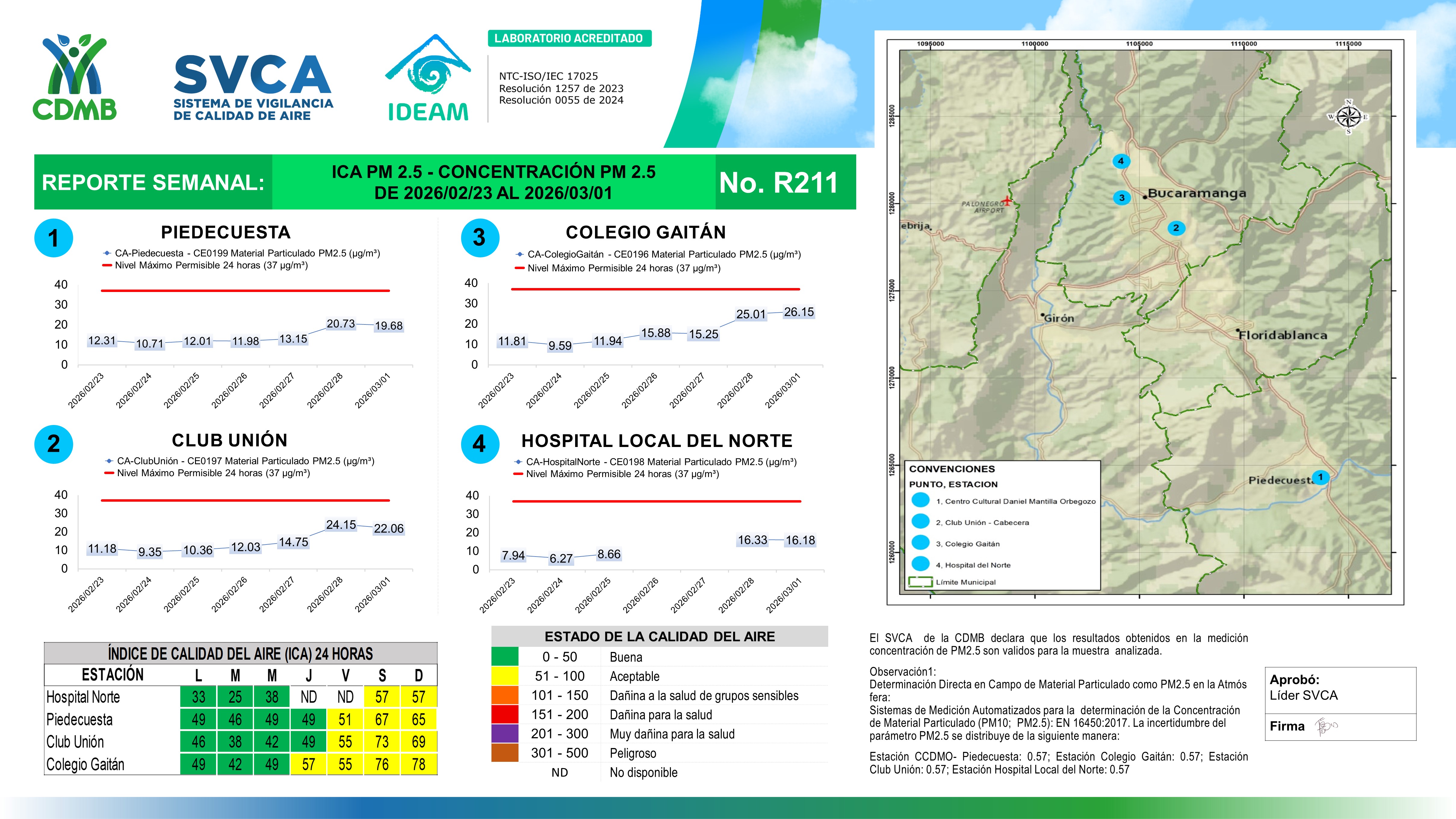 Reporte Semanal N° 211 — Índice de Calidad del Aire Concentración PM 2 5 — 23/02/2026–01/03/2026