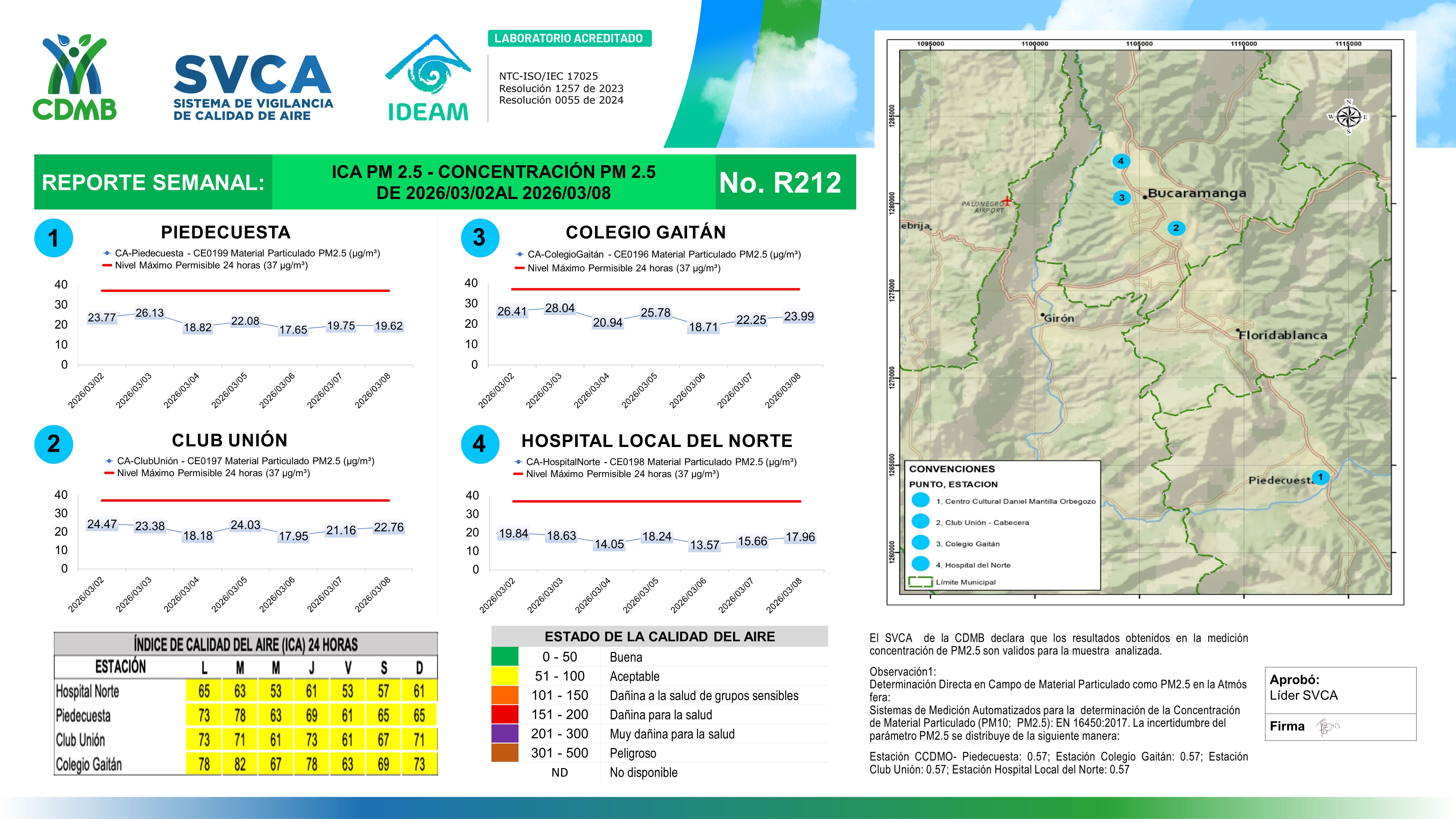Reporte Semanal N° 212 — Índice de Calidad del Aire Concentración PM 2 5 — 02/03/2026–08/03/2026
