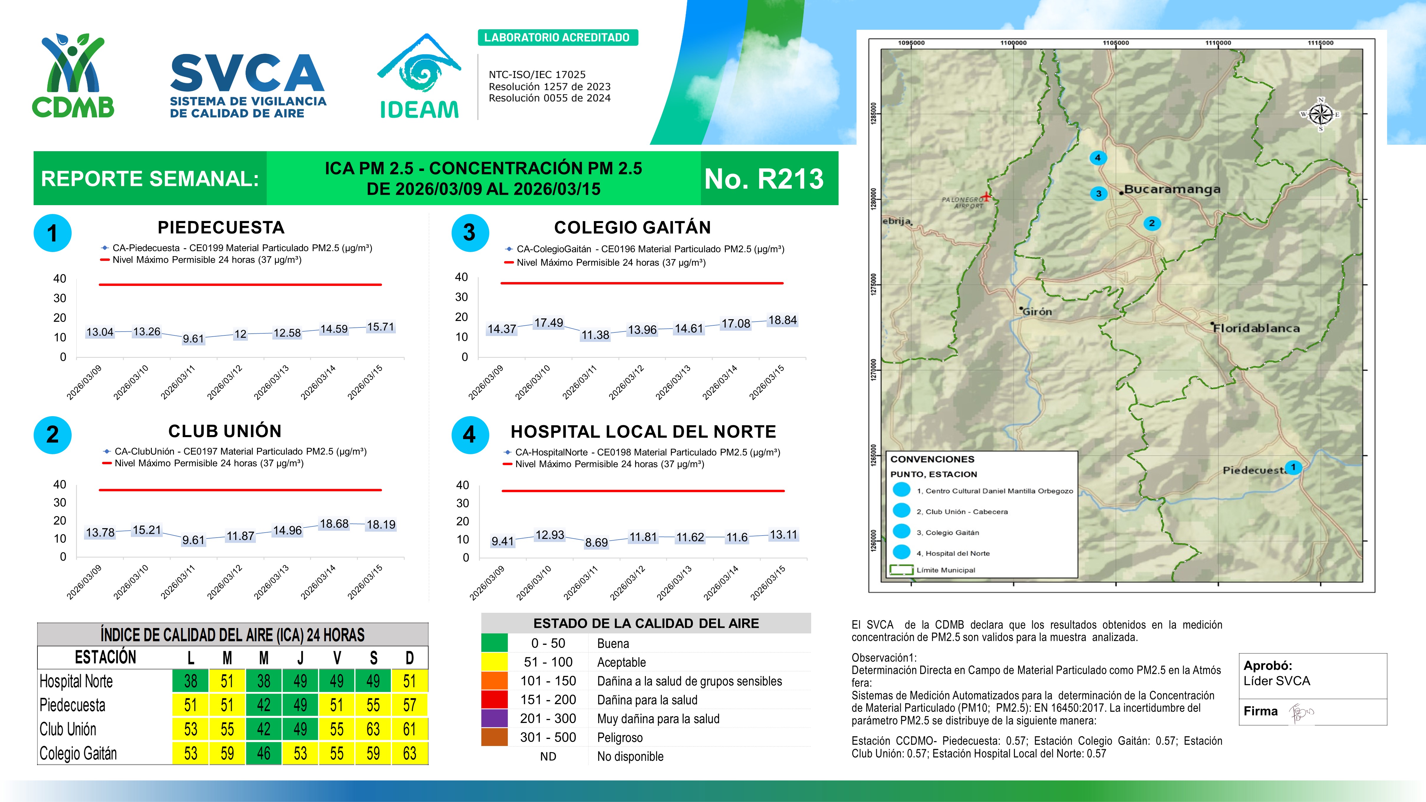 Reporte Semanal N° 213 — Índice de Calidad del Aire Concentración PM 2 5 — 09/03/2026–15/03/2026