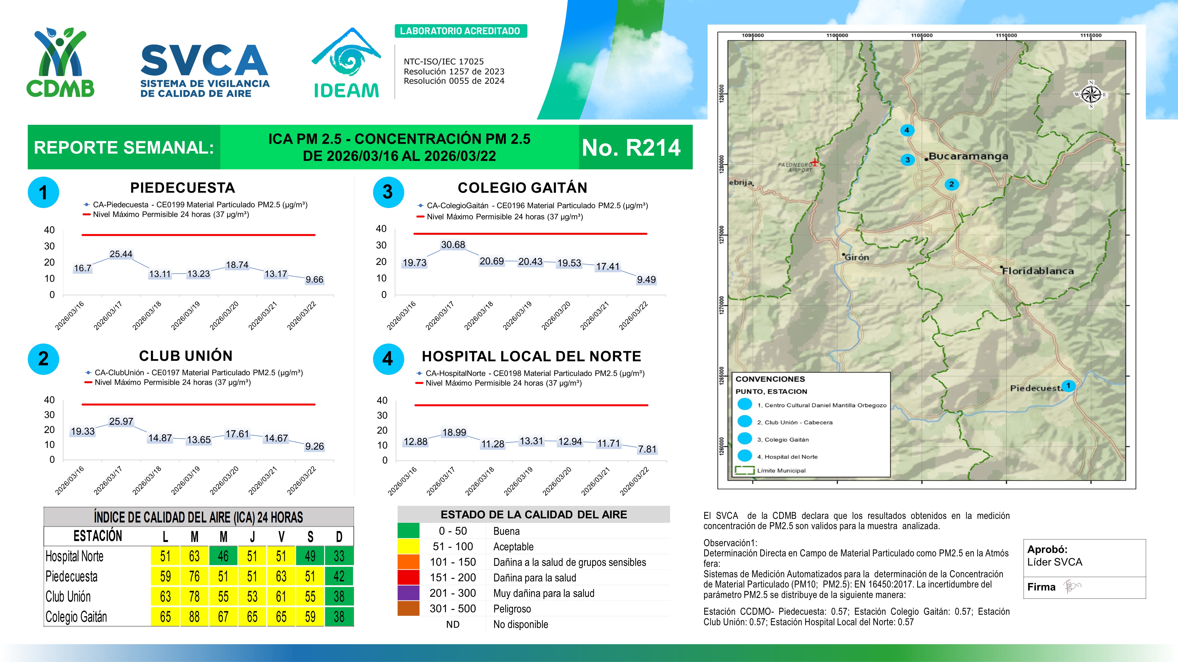 Reporte Semanal N° 214 — Índice de Calidad del Aire Concentración PM 2 5 — 22/03/2026–26/03/2026