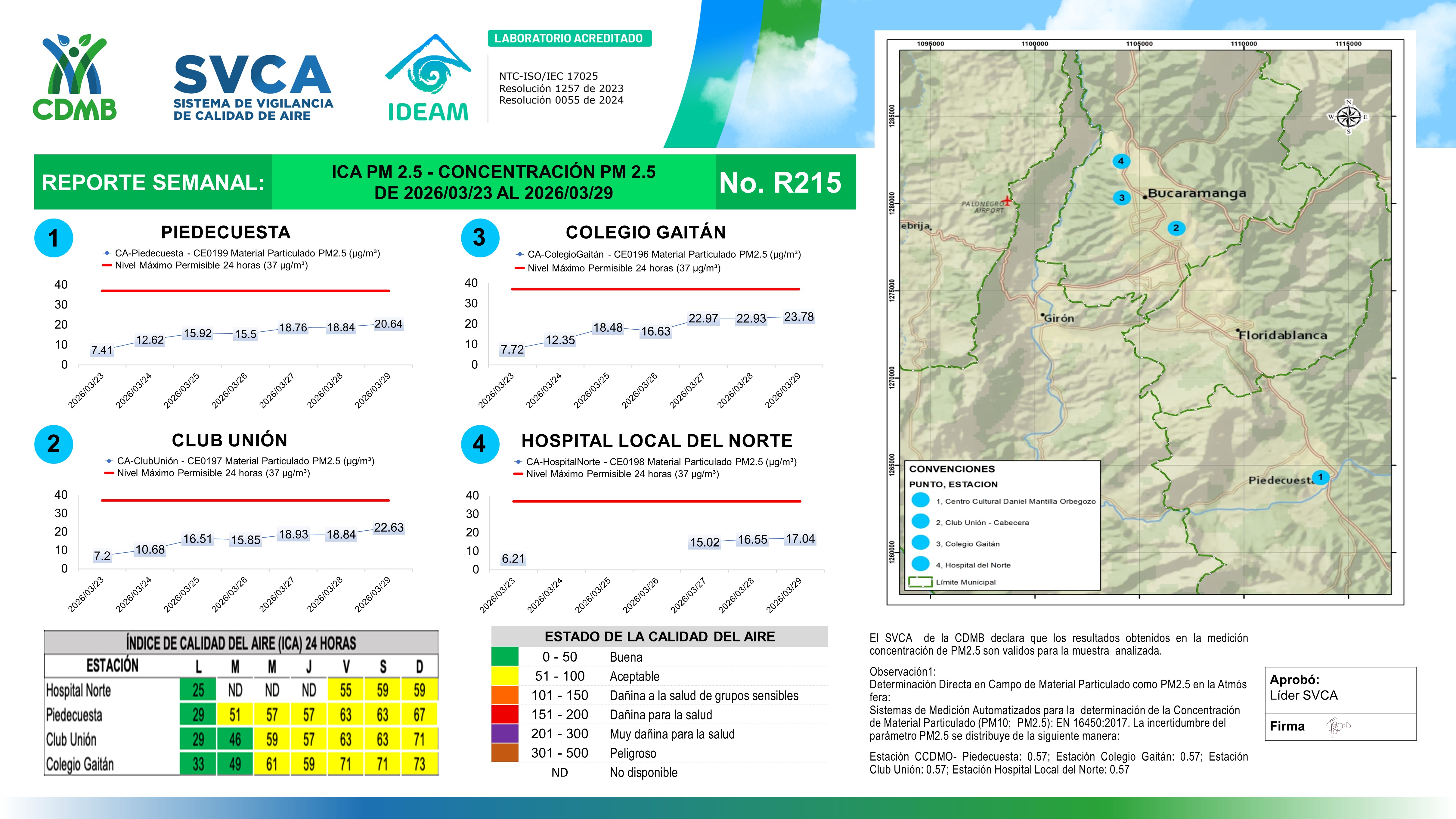 Reporte Semanal N° 215 — Índice de Calidad del Aire Concentración PM 2 5 — 23/03/2026–29/03/2026