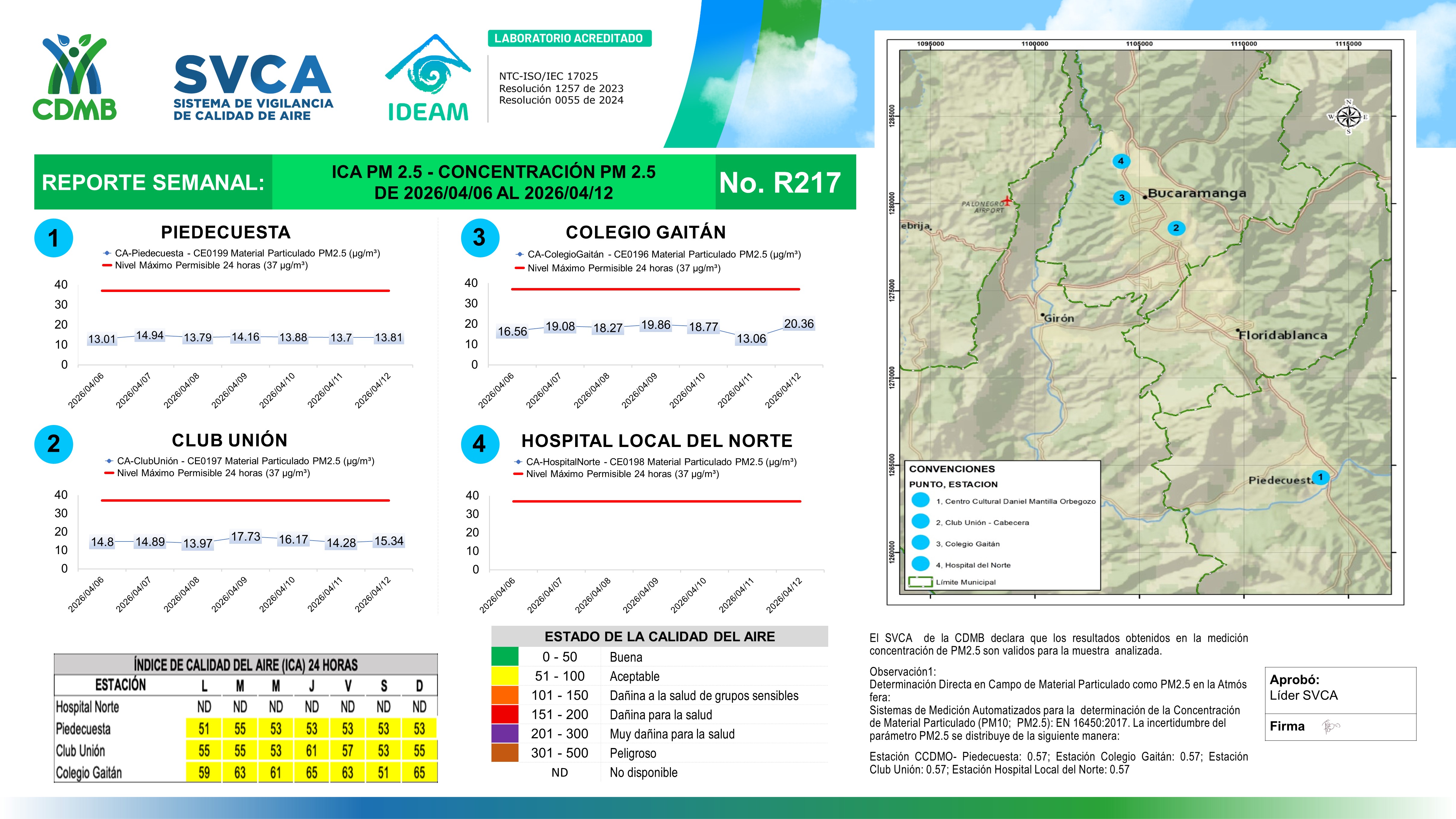 Reporte Semanal N° 217 — Índice de Calidad del Aire Concentración PM 2 5 — 06/04/2026–12/04/2026